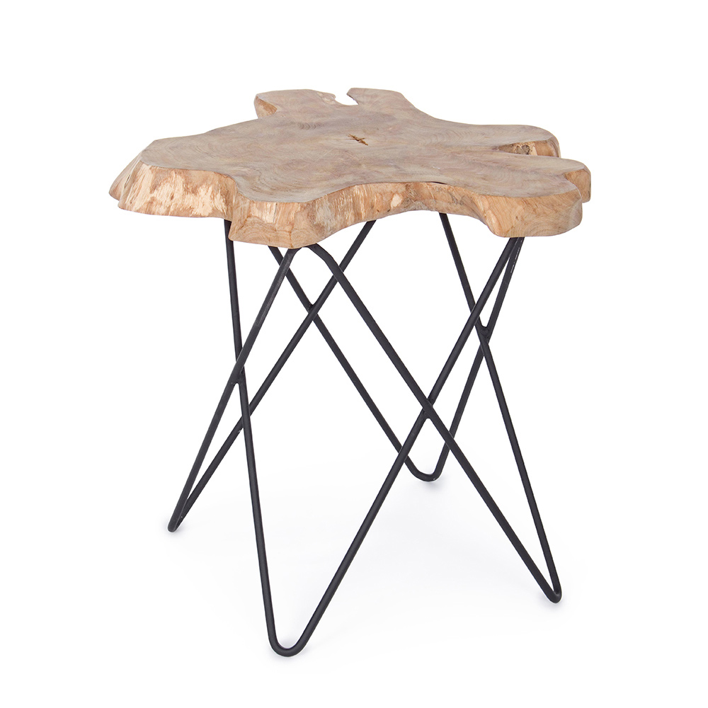 Kjo tavolinë kafeje e dhomës së ndenjes është bërë me një dysheme tëbërë me rrënjë dru tik me një përfundim natyralDhekëmbët në çelik epoksi të veshur me pluhur. Duke qenë një material natyral , format dhe përmasat e krijuara nga druri janë vetëm tregues, prandaj të gjitha produktet do të jenë të ndryshme nga njëri-tjetri. Dizajni i stilit industrial i përshtatshëm për kontekste minimale dhe natyraliste.