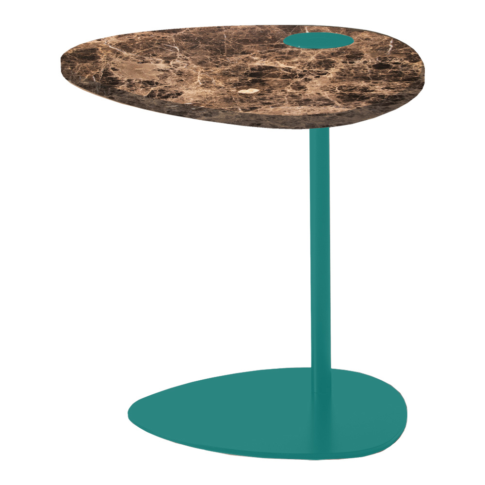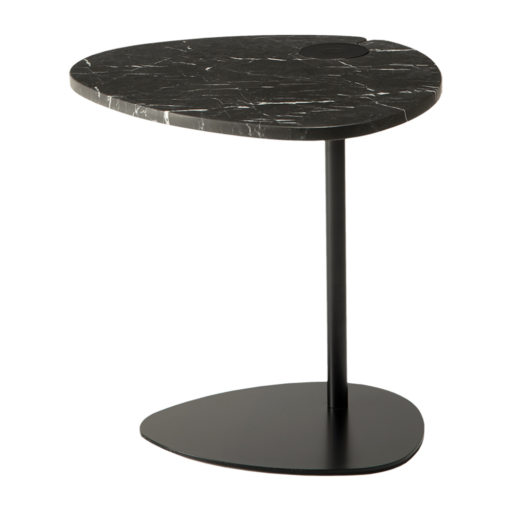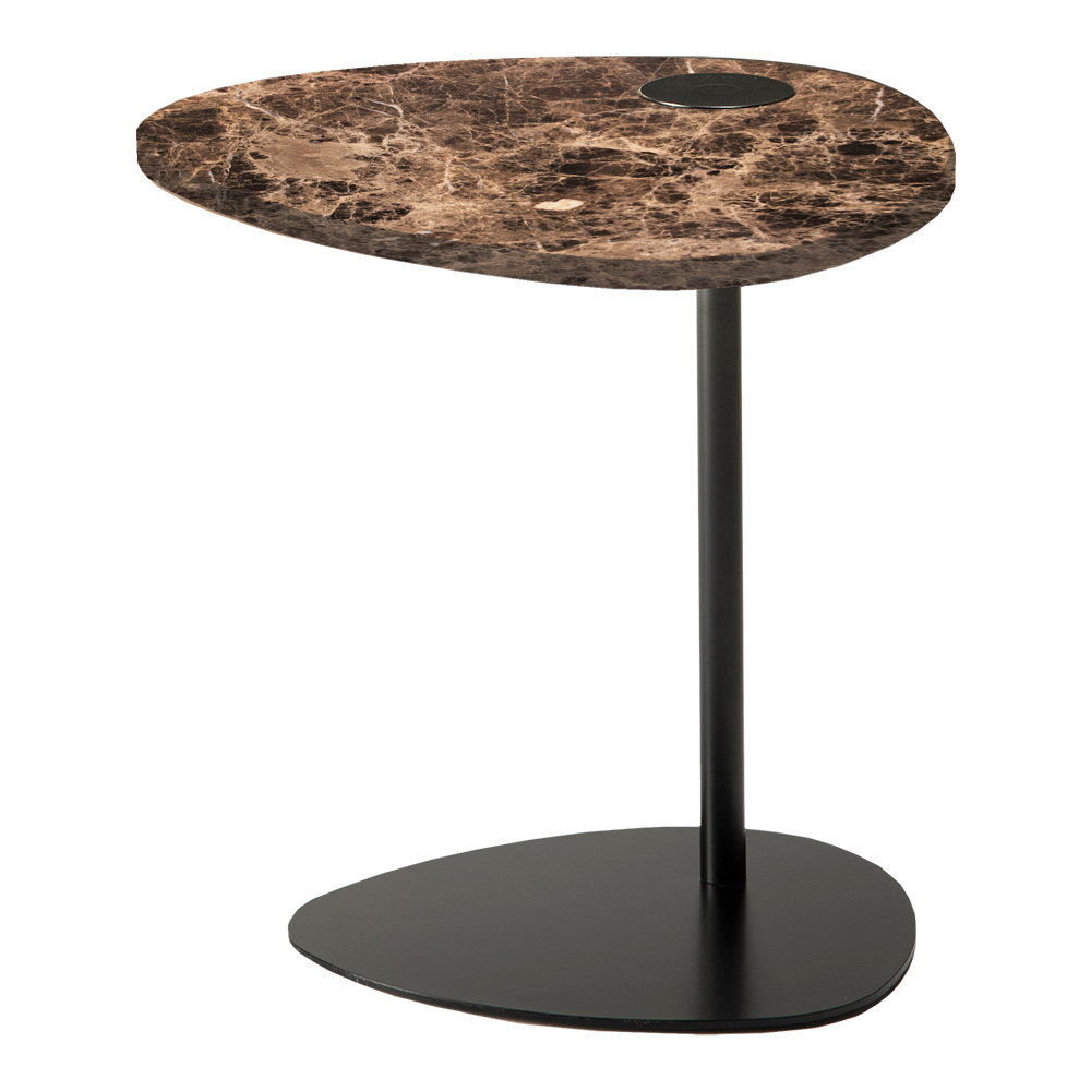 tryezë anësore e divanit për dhomën e ndenjes është e frymëzuar nga format e parregullta dhe natyrore të guralecave të zbutura nga uji. Linjat e veçanta dhe interesante ndryshojnë për të rritur dhomën dhe për t'i dhënë asaj një nuancë të përsosjes. Dizajni i tij