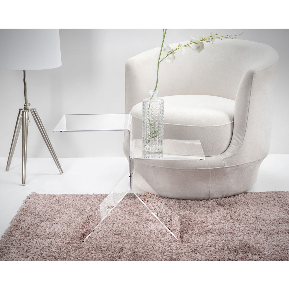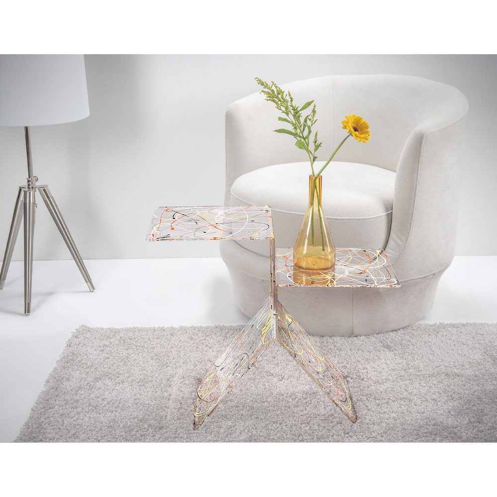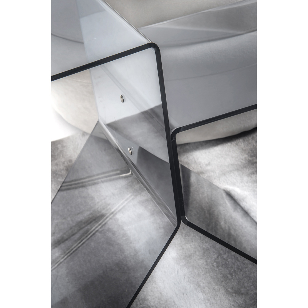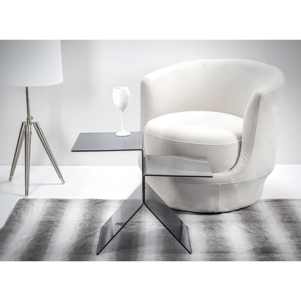 Tavolinëkafeje e bërë nëPolimer i pastër i virgjër 100% pleksiglas PMMA, një material rezistent ndaj goditjeve, i padeformueshëm, i pandryshueshëm dhe izolues ndaj nxehtësisë, shkëlqimi dhe shkëlqimi i të cilit mbeten konstante dhe të pandryshuar me kalimin e kohës. Rezistent, elegant dhe i rafinuar, ky komplement është tërësisht i konceptuar, projektuar dhe prodhuar në Itali , me materiale italiane.