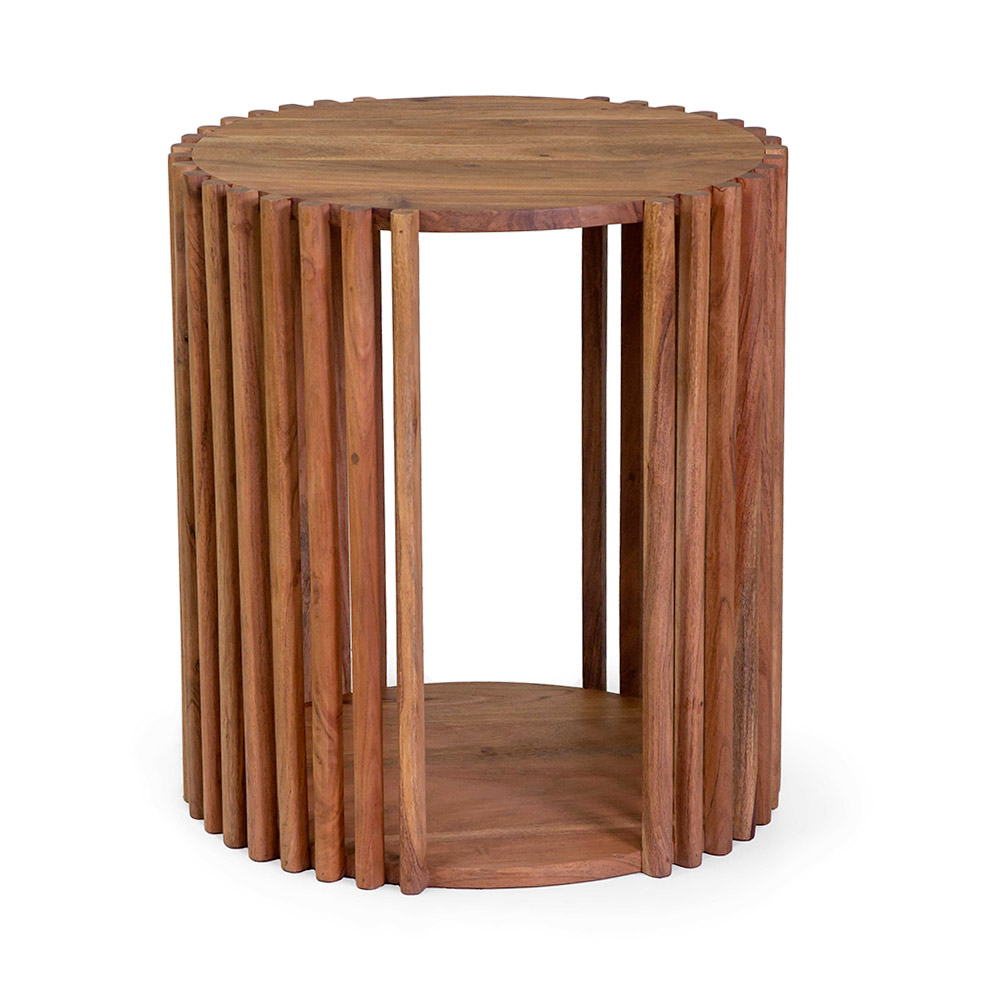 Dizajni vertikal i pllakës krijon një efekt vizual dinamik dhe të lehtë, perfekt për t'i shtuar një prekje origjinaliteti çdo ambienti. Forma e rrumbullakët dhe kompakte e bën atë ideal si një tavolinë kafeje , komodine apo aksesor mobilimi për kënde komode.