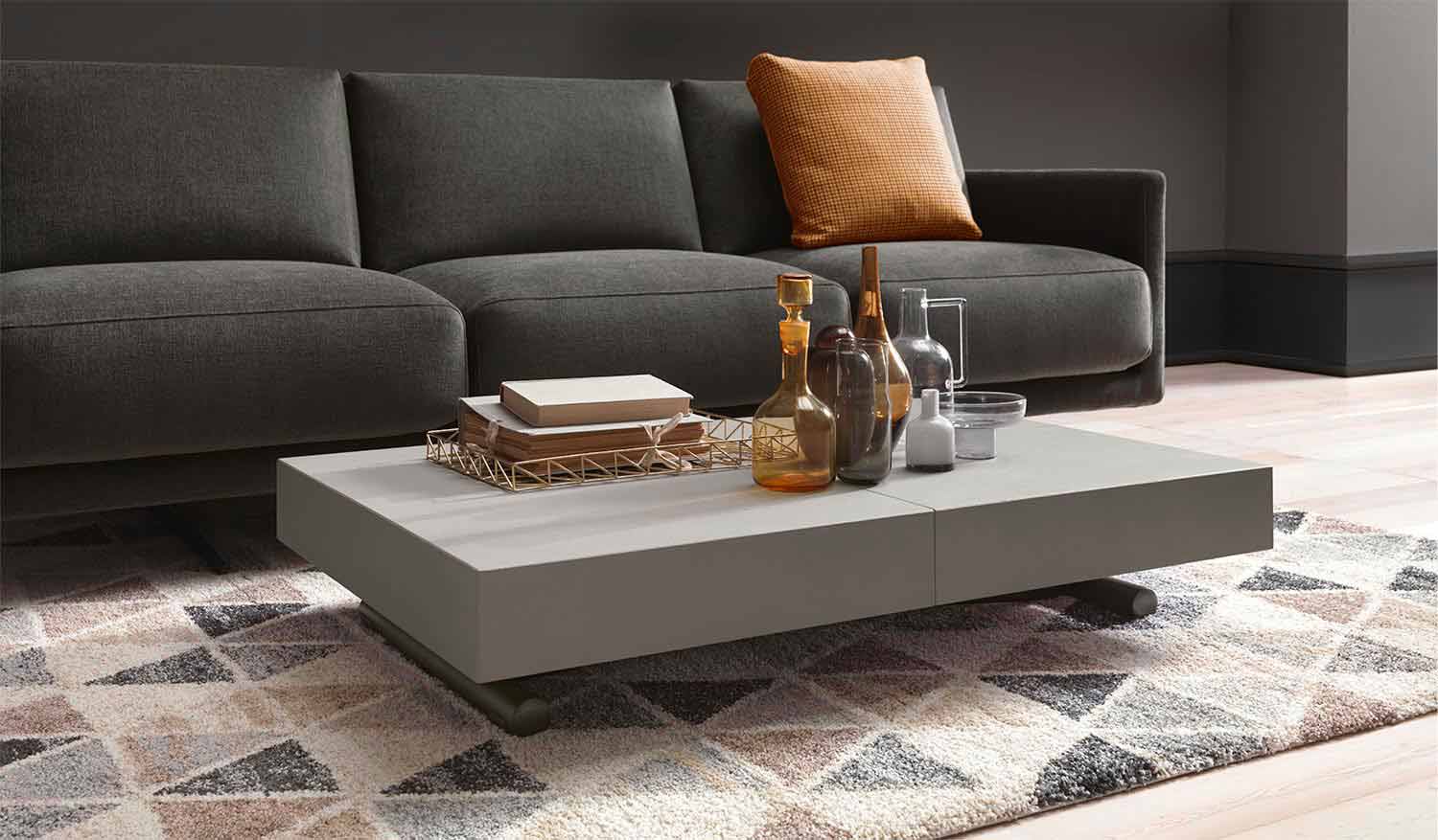 tavolinë kafeje e transformueshme përvijohet nga linja të rafinuara dhe minimale në gjendje të arredojnë ambientet tuaja shtëpiake dhe të kontraktuara me elegancë dhe praktike.