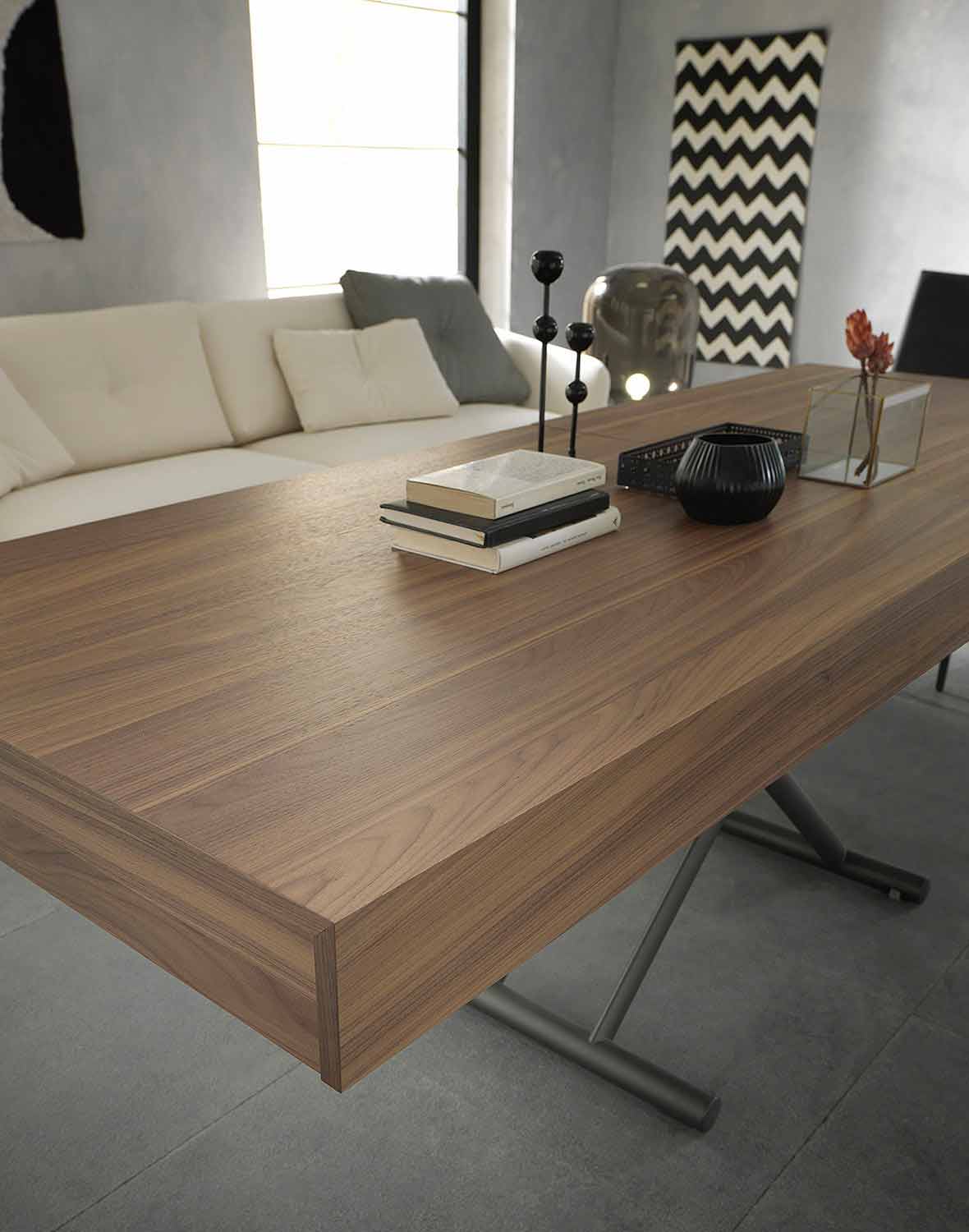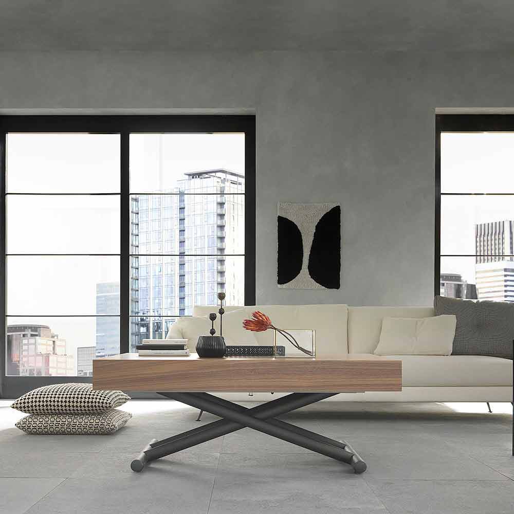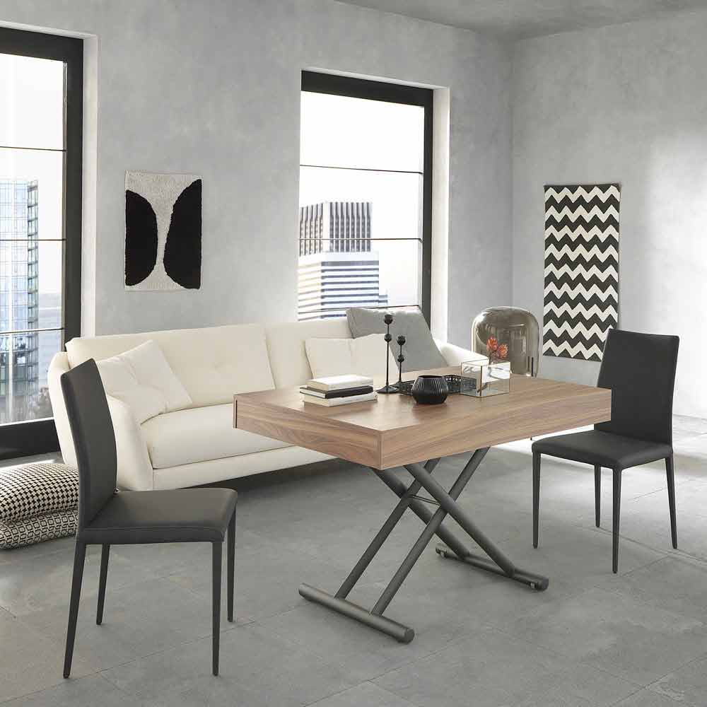 tavolinë kafeje e transformueshme karakterizohet nga linja elegante dhe thelbësore që shoqërojnë një dizajn të gjithanshëm të përshtatshëm për të arreduar çdo stil ambienti.