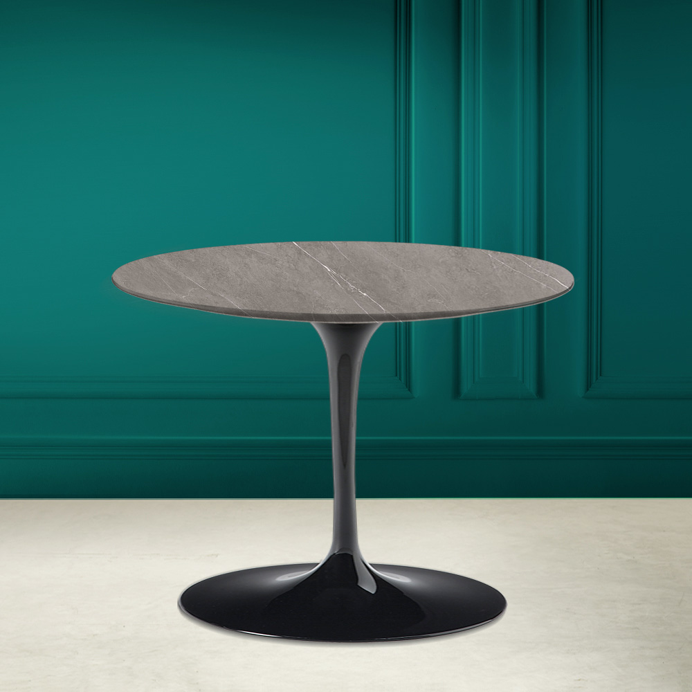 Tavolinë kafeje me majë të rrumbullakët në qeramikë guri gri, efekt guri gri mat dhe bazë alumini të lëmuar tërësisht e prodhuar në Itali . Ky aksesor mobilimi, falë përfundimeve të tij të thjeshta dhe të rafinuara , mund të futet në çdo lloj mobilie në çdo ambient banimi. Karakteristika kryesore e tij është materiali i pjesës së sipërme, pra qeramika gri e gurit, e cila është një aleat i shkëlqyer për ta bërë ambientin më mikpritës dhe më të ngrohtë falë grafikës së saj shumë të çmuar dhe komplekse . Bashkimi mes qeramikës dhe aluminit të lëmuar krijon një kombinim perfekt që e bën këtë produkt të përshtatshëm për të gjitha rastet dhe situatat.