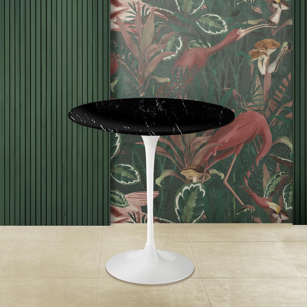 Tavolinë kafeje me mermer marquinia të zezë dhe bazë alumini të lëmuar e prodhuar në Itali