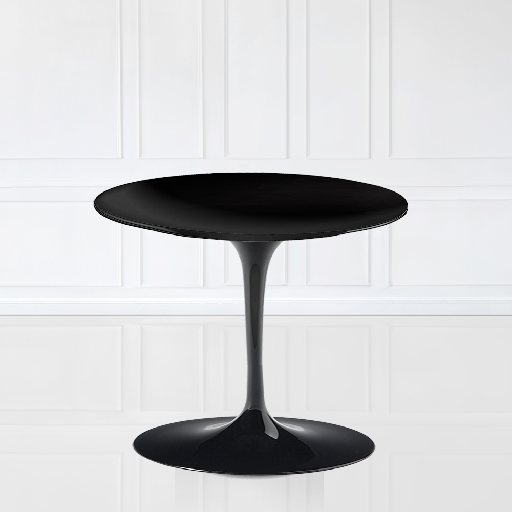 Tavolinë kafeje tërësisht e prodhuar në Itali me majë të rrumbullakët në laminat të lëngshëm të zi dhe bazë prej alumini të lëmuar të zi. Kjo tavolinë është bërë me materiale mjeshtërie të shkëlqyera të cilat sigurojnë cilësi dhe rezistencë me kalimin e kohës . Bashkimi midis majës së laminatit të lëngshëm dhe bazës së lëmuar prej alumini ofron një zgjidhje mobilimi me një dizajn të thjeshtë dhe të rafinuar, ideale për ata që duan të arredojnë çdo lloj ambienti jetese me shije dhe linearitet. Është një element i shkëlqyer si i funksionalitetit ashtu edhe i elegancës për çdo ambient, duke qenë në të njëjtën kohë një objekt dizajni dhe një mobilie e lehtë për t'u përdorur. Ky produkt mund të futet në stile të ndryshme arredimi, nga klasike në moderne në elegant, falë shkathtësisë së tij dhe freskisë së strukturës së tij .