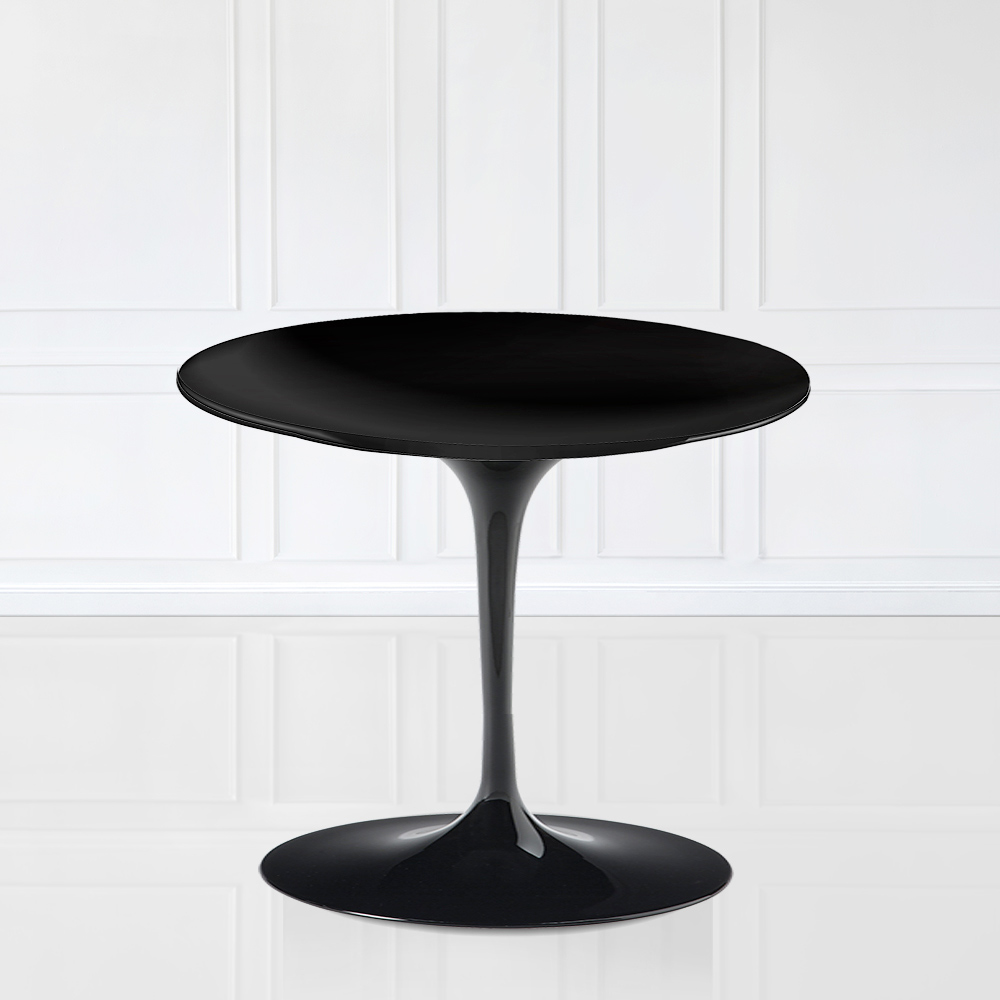 Tavolinë kafeje e punuar me dorë në Itali me majë të rrumbullakët në laminat të lëngshëm të zi dhe bazë prej alumini të lëmuar të zi . Tavolinë kafeje e përshtatshme për çdo stil arredimi falë përfundimeve të saj lineare dhe elegante të cilat i garantojnë një prekje moderne dhe shik . Ky element është i përsosur në çdo ambient jetese por përshtatet edhe me dhomat e tjera falë stërhollimit dhe finesës së tij. Laminati i lëngshëm i pjesës së sipërme dhe alumini i lëmuar i bazës i japin këtij aksesori arredimi cilësi dhe rezistencë me kalimin e kohës dhe e bëjnë atë funksional për çdo rast përdorimi apo eventi. Thjeshtësia dhe praktika janë fjalët kyçe për të përshkruar këtë tavolinë kafeje e cila është ideja perfekte për të përfunduar arredimin e çdo vendi dhe dekori.