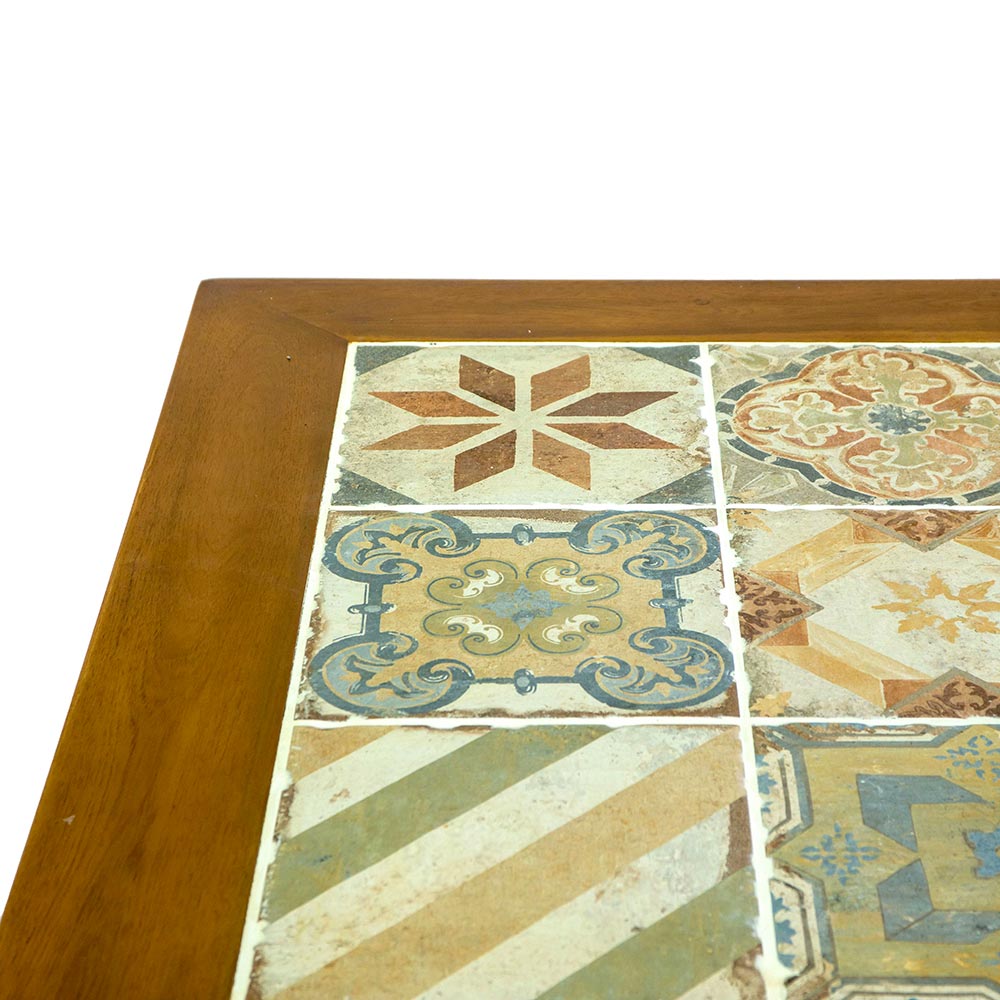 Zbuloni tryezën e ngrënies që ndërthur elegancën fshatare dhe artin tradicional në një mobilje ekskluzive. Kjo tavolinë e bukur përmban një majë të dekoruar prej qeramike , të vendosur në mënyrë harmonike në një strukturë të fortë druri . Çdo pllakë është zgjedhur me kujdes për të krijuar një mozaik që ngjall traditat artizanale, duke e bërë atë një pjesë unike dhe magjepsëse.