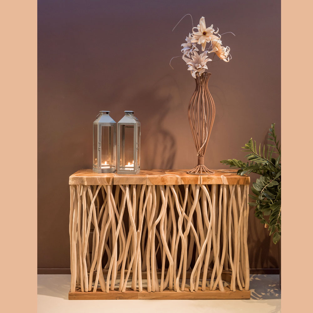 Mjeshtëria dhe përdorimi i drurit në formën e tij më autentike e bëjnë çdo tavolinë konsole një copë unike, në të cilën fibrat e drurit dhe parregullsitë natyrore bëhen elementë me vlerë të madhe estetike.