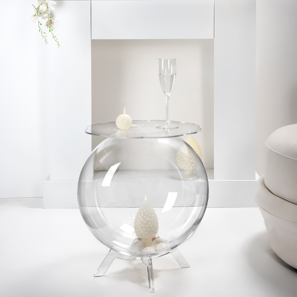 Cilësia e pleksiglasit 100% të virgjër polimer PMMA garanton rezistencë dhe shkëlqim të pashembullt, duke ruajtur shkëlqimin e tij të pandryshuar me kalimin e kohës. Është më shumë se një tavolinë kafeje; është një investim në qëndrueshmërinë dhe veçantinë e mobiljeve tuaja.