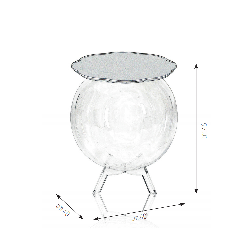 Forma e tij sferike, e guximshme dhe e pastër, transformohet sipas nevojave tuaja: sot një vazo elegante për kompozimet tuaja me lule, nesër një akuarium origjinal që do t'i japë jetë të re mjedisit tuaj, ose një enë praktike për lodra ose rroba që mund të shënohen në mënyrë diskrete. Transparenca e saj është një ftesë për të shprehur krijimtarinë tuaj, për të mbushur dhe dekoruar sipas frymëzimit të momentit, pa e rënduar asnjëherë mjedisin.