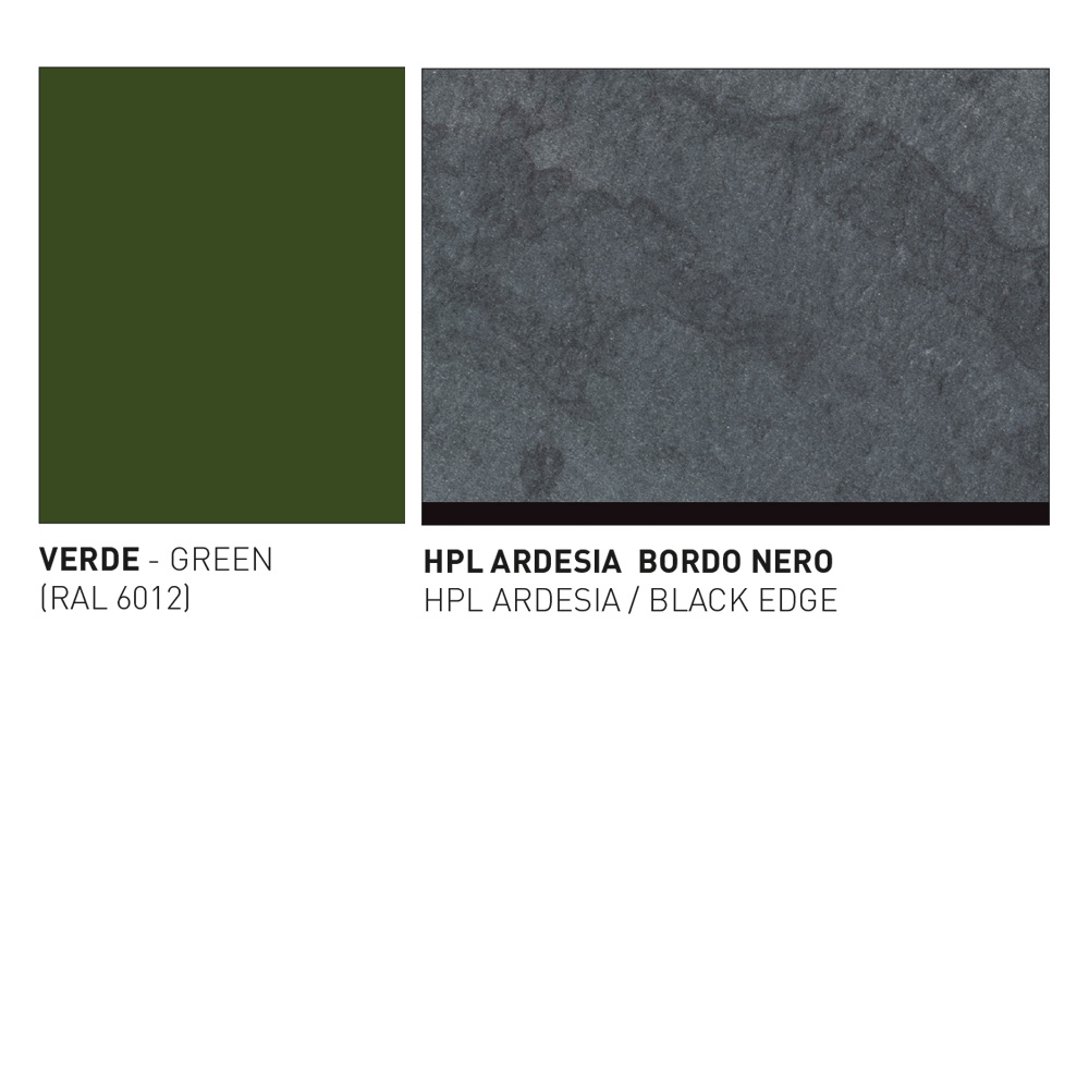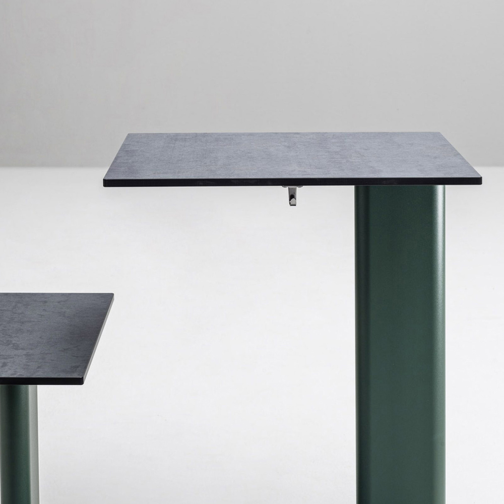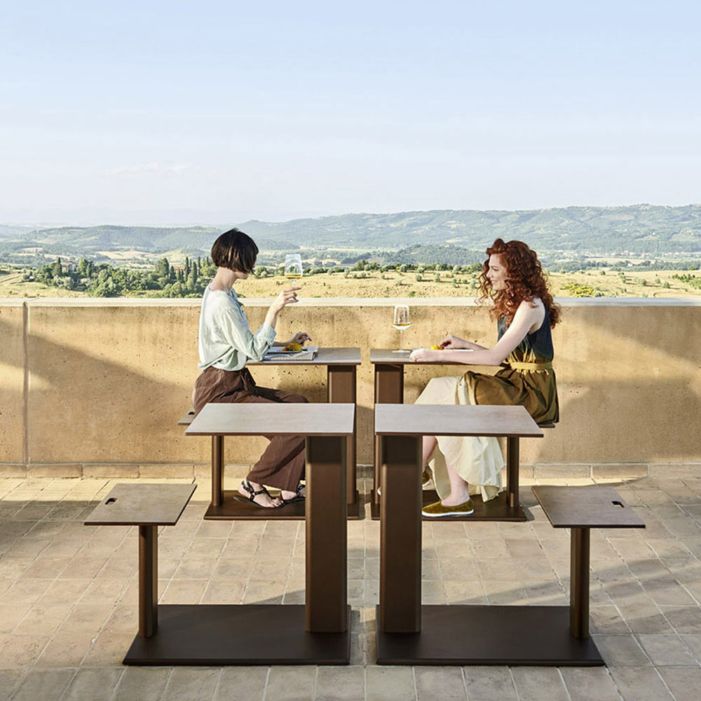 Tavolinë me sedilje të bashkuar prej alumini dhe sipër me ngjyrë HPL Made in Italy.