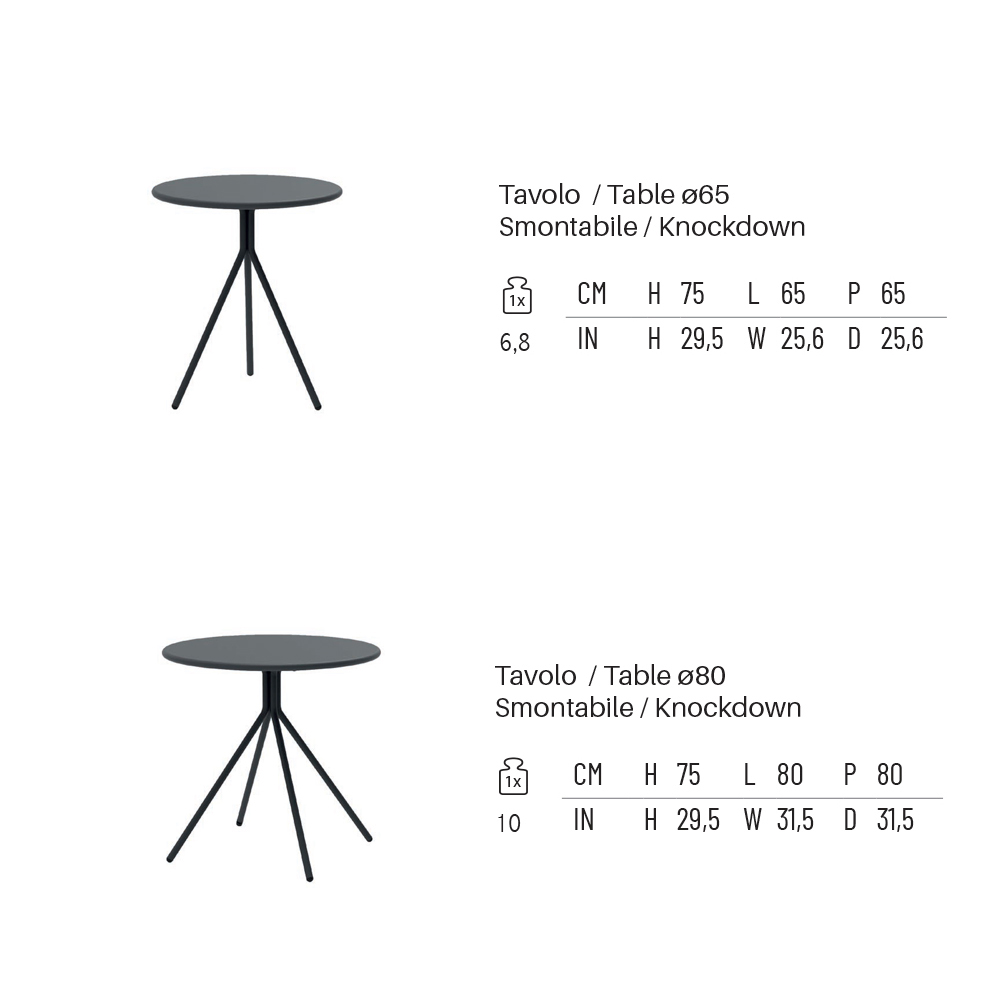 Tavolinë e rrumbullakët kopshti me kornizë çeliku të galvanizuar 100% e prodhuar në Itali