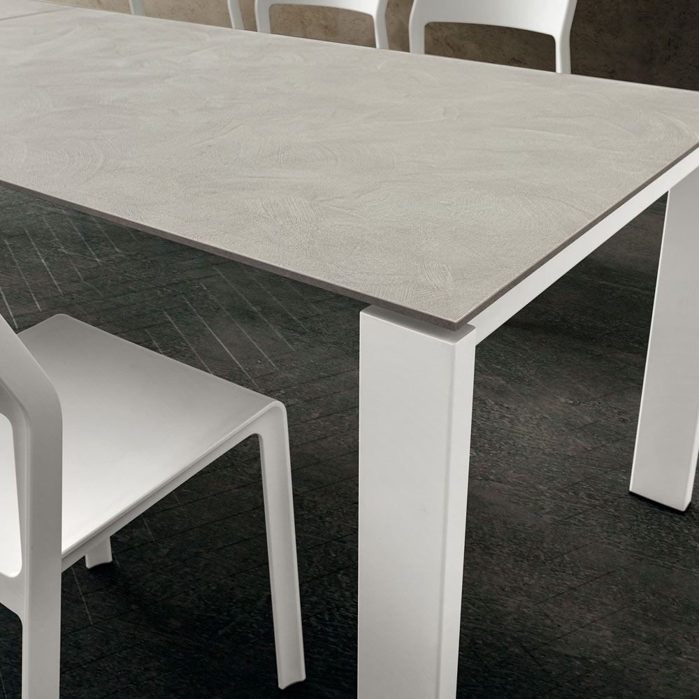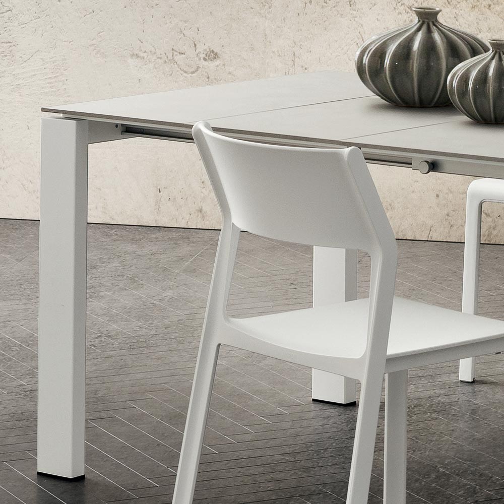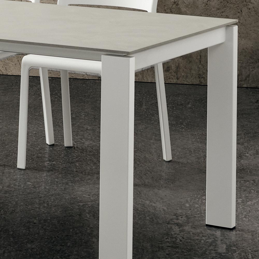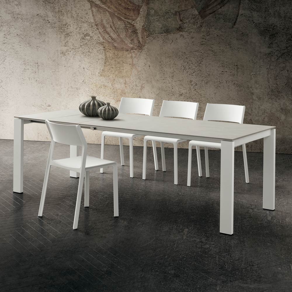 Tavolinë ngrënieje e zgjatur në cilësi të lartë Made in Italy hpl dhe metal me llak të bardhë.