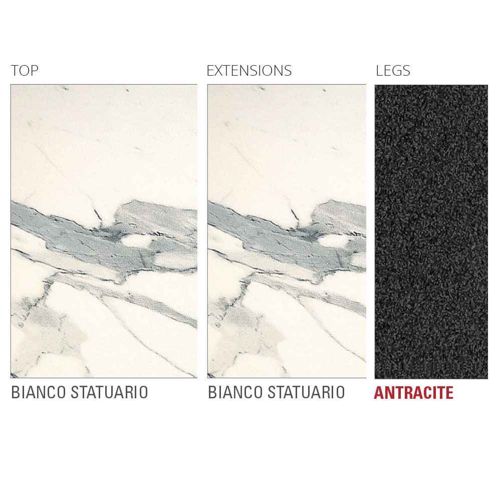 NB : pjesa e sipërme e tavolinës dhe baza janë të disponueshme në një gamë të gjerë përfundimesh të ndryshme. Vazhdimësia e kokrrës midis majës dhe zgjatimit nuk është e garantuar