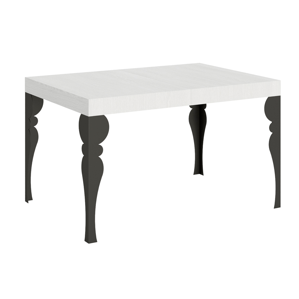 Kjo tryezë zgjatuese është një ekzemplar i mjeshtërisë së hollë, ku dizajni tradicional takohet me funksionalitetin modern. Me këmbët e saj të kthyera në një antracit elegant, kjo tryezë ngjall stilin klasik , por me një prekje të sofistikimit modern falë pjesës së sipërme prej druri.