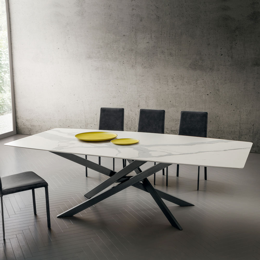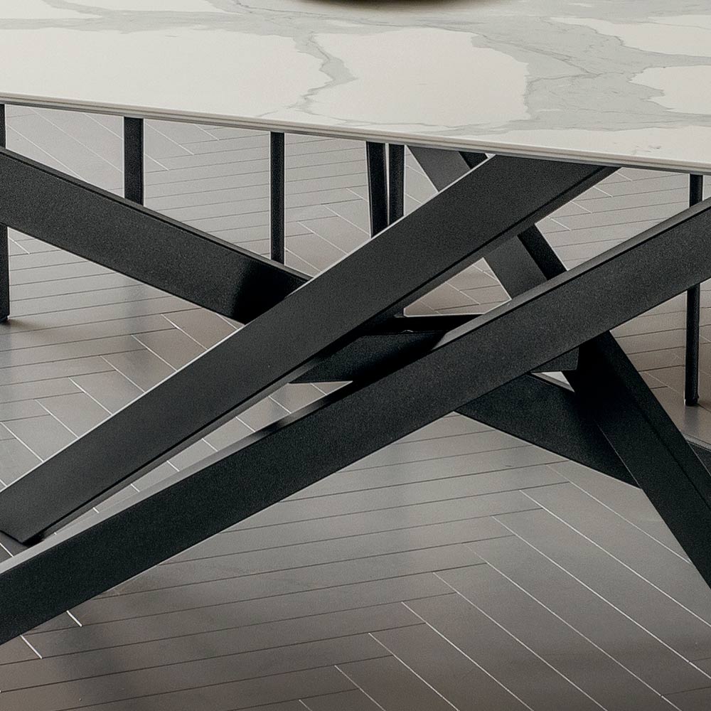 estetikë të rafinuar dhe origjinale që karakterizon çdo ambient duke sjellë me vete elemente elegante dhe të rafinuara që janë moderne dhe kreative në të njëjtën kohë. E veçanta e kësaj tavoline është baza me këmbë të kryqëzuara e cila pasuron dizajnin e saj duke revolucionarizuar stilin e të gjithë dhomës protagoniste e së cilës ajo bëhet protagoniste, duke pushtuar çdo vëmendje. Topi i mrekullueshëm i fuçisë kompleton pamjen përfundimtare të tryezës duke dhënë një