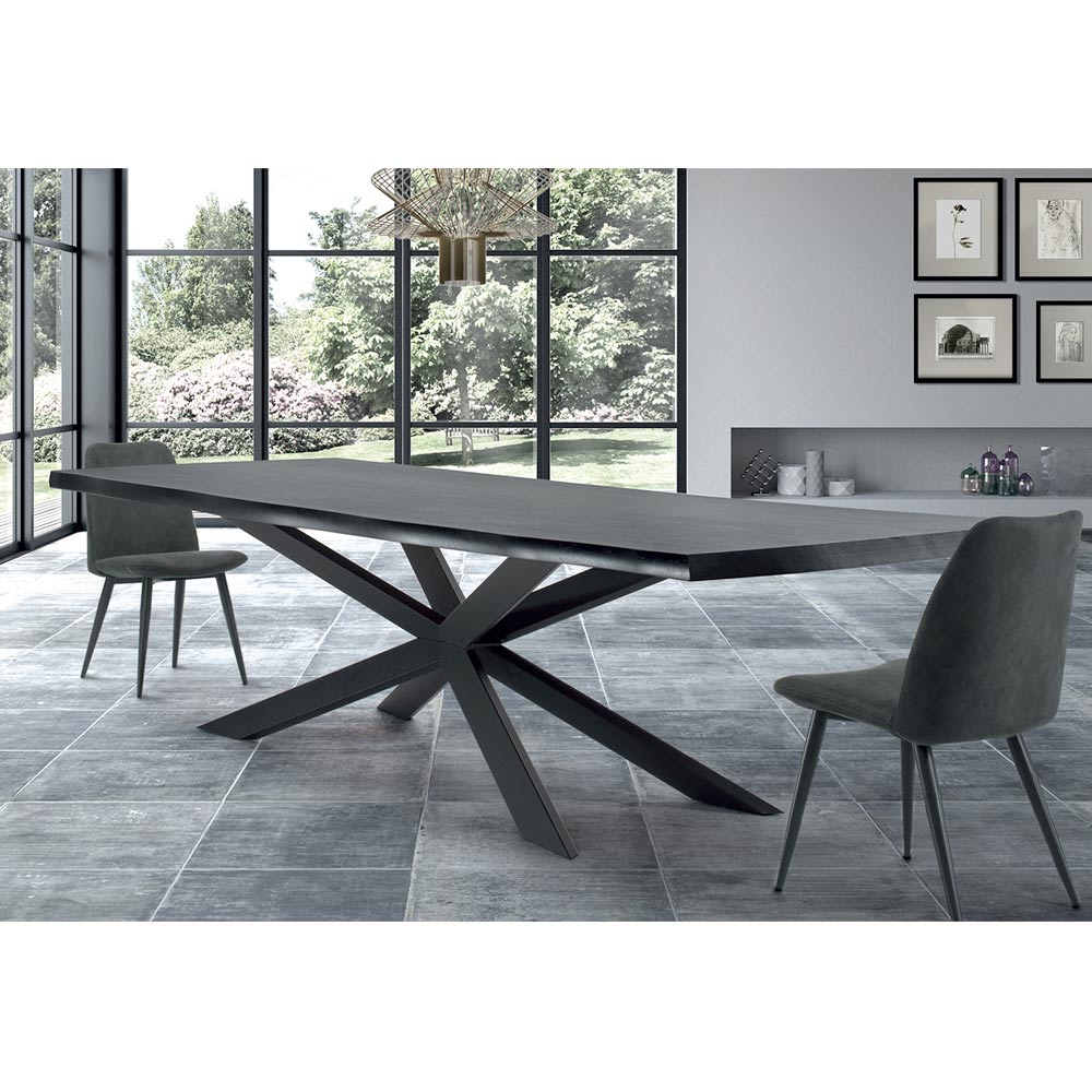Grotta është një tavolinë ngrënieje moderne me ndikim të fortë estetik dhe plot funksionalitet, perfekte për të arreduar të gjitha ambientet tuaja me stil dhe dizajn. Punuar me dorë në Itali me materiale 100% Made in Italy. Me një majë druri të rimeso me buzë të parregullta të zhveshura dhe bazë çeliku të zezë. Baza është e zbukuruar me një friz të zi të përbashkët prej çeliku.