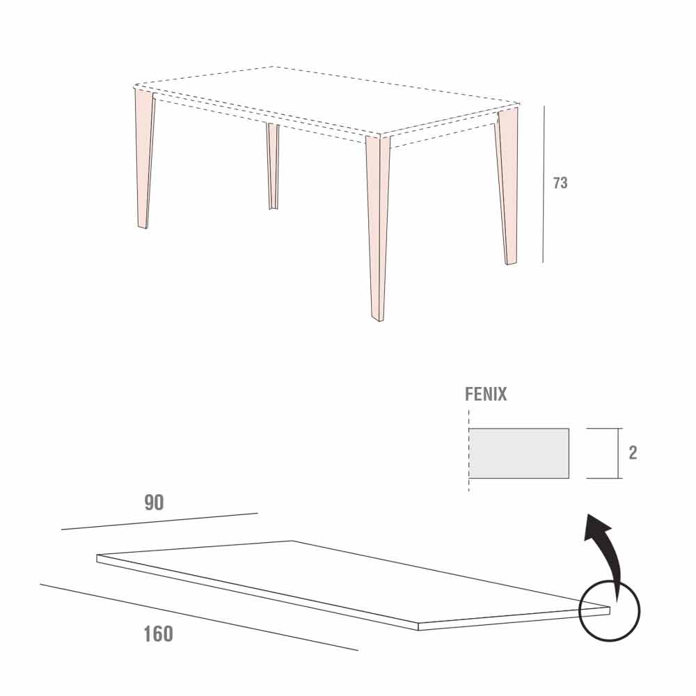 Tavolinë ngrënie Fenix me strukturë metalike të llakuar Prodhuar në Itali.