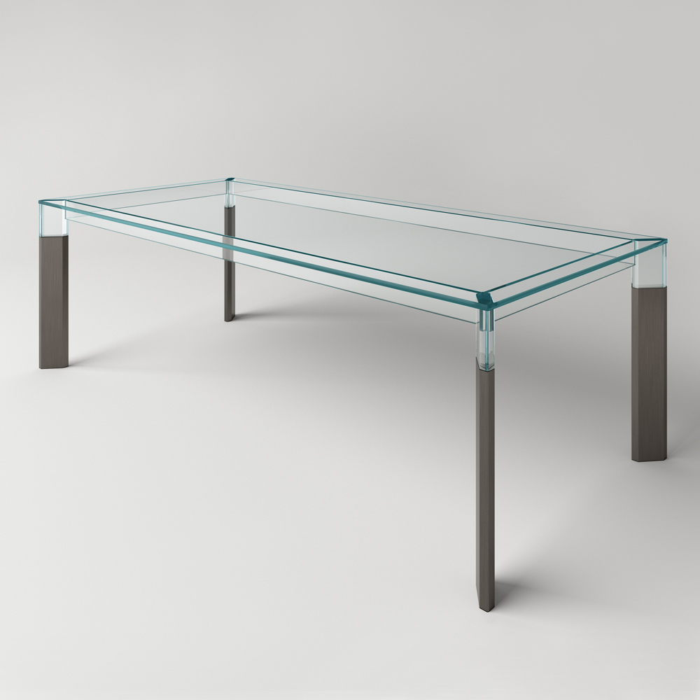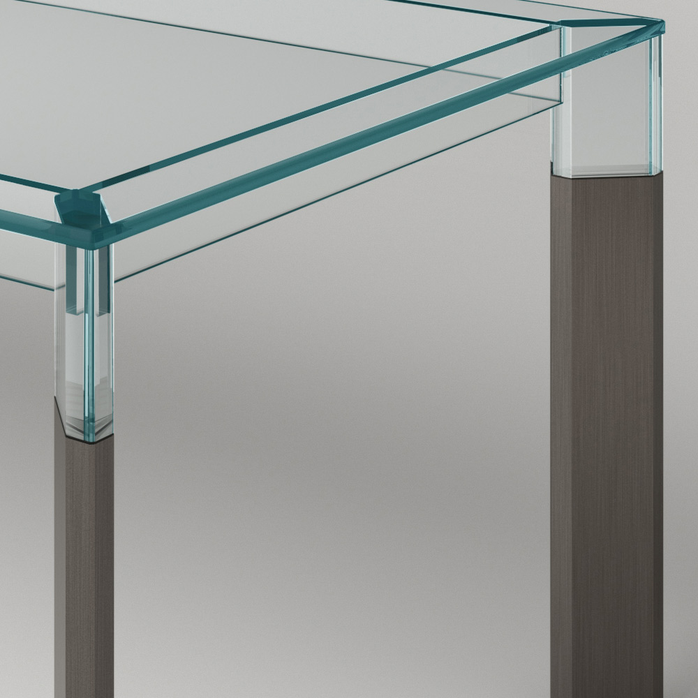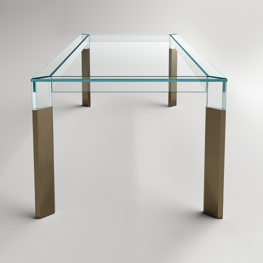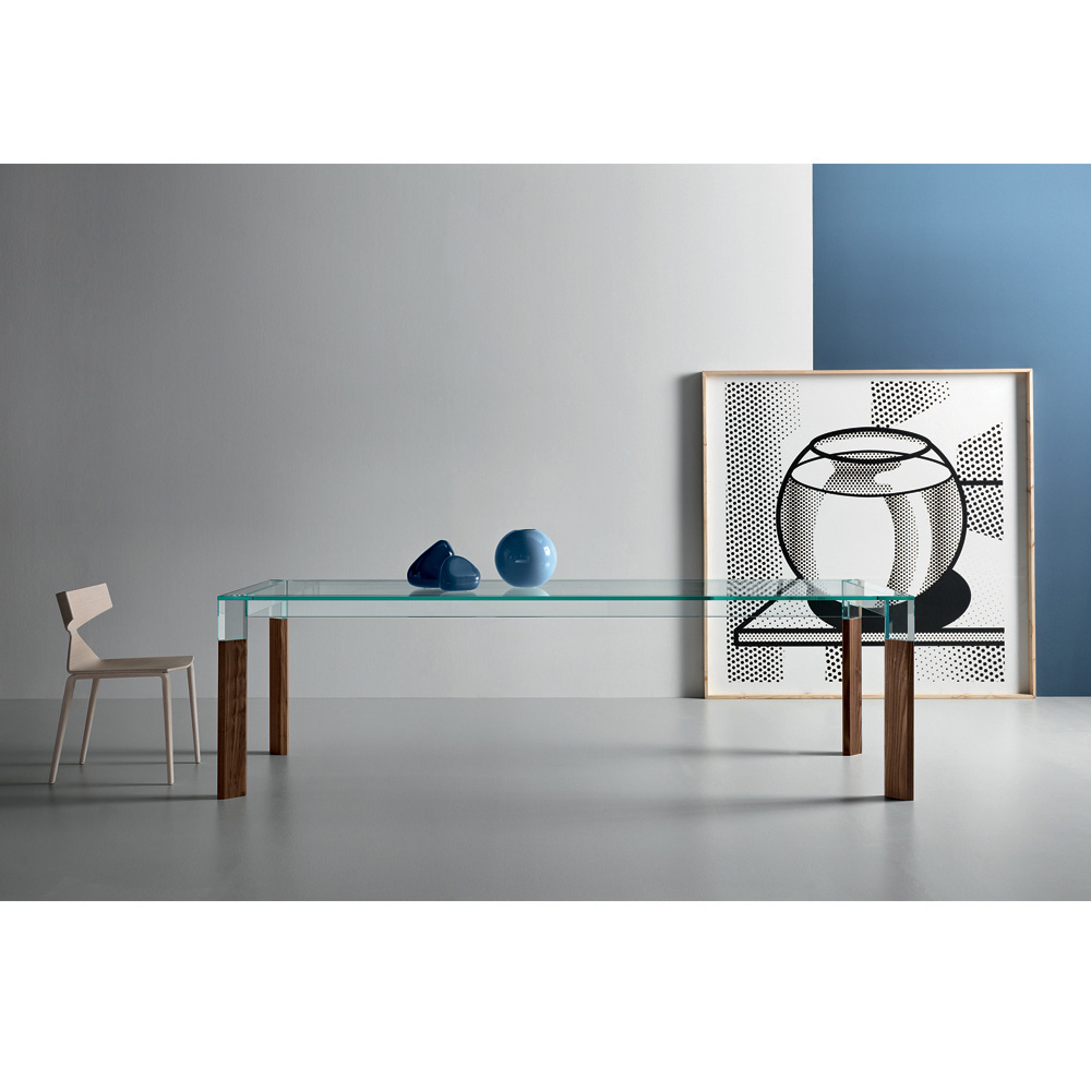 Tavolinë ngrënie tërësisht e prodhuar në Itali me majë xhami dhe këmbë prej xhami dhe druri të fortë . Një zgjidhje mobilimi e përjetshme, e përshtatshme për stile të ndryshme, e aftë për të nënvizuar bashkimin e përsosur mes elegancës së xhamit dhe madhështisë së drurit, duke favorizuar shkathtësinë e përdorimit të tij në hapësirat shtëpiake. Një protagonist i madh i zonës së ndenjes, i karakterizuar nga teknika komplekse ndërtimi të përdorura nga artizanë të aftë italianë për të krijuar një tavolinë ngrënieje me cilësi të lartë dhe veçanërisht funksionale. Rezultati është një harmoni e linjave dhe formave të thjeshta që krijojnë idenë perfekte për të arreduar dhomat e ngrënies apo kuzhinat me një stil bashkëkohor në mënyrë ekskluzive dhe të rafinuar, duke pushtuar qendrën e vëmendjes dhe duke i bërë momentet në shoqëri unike.
