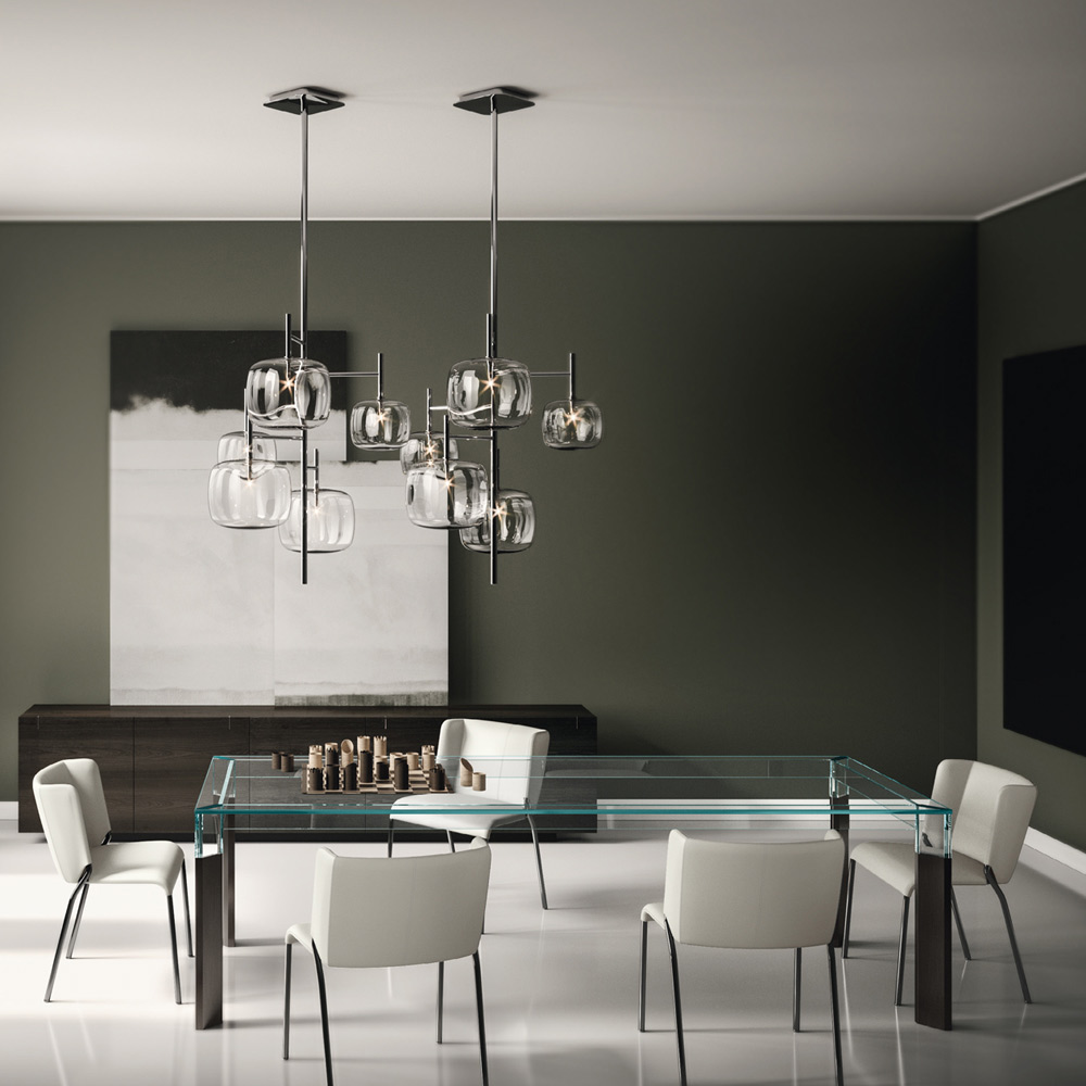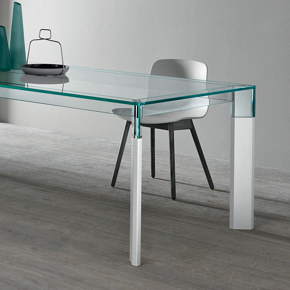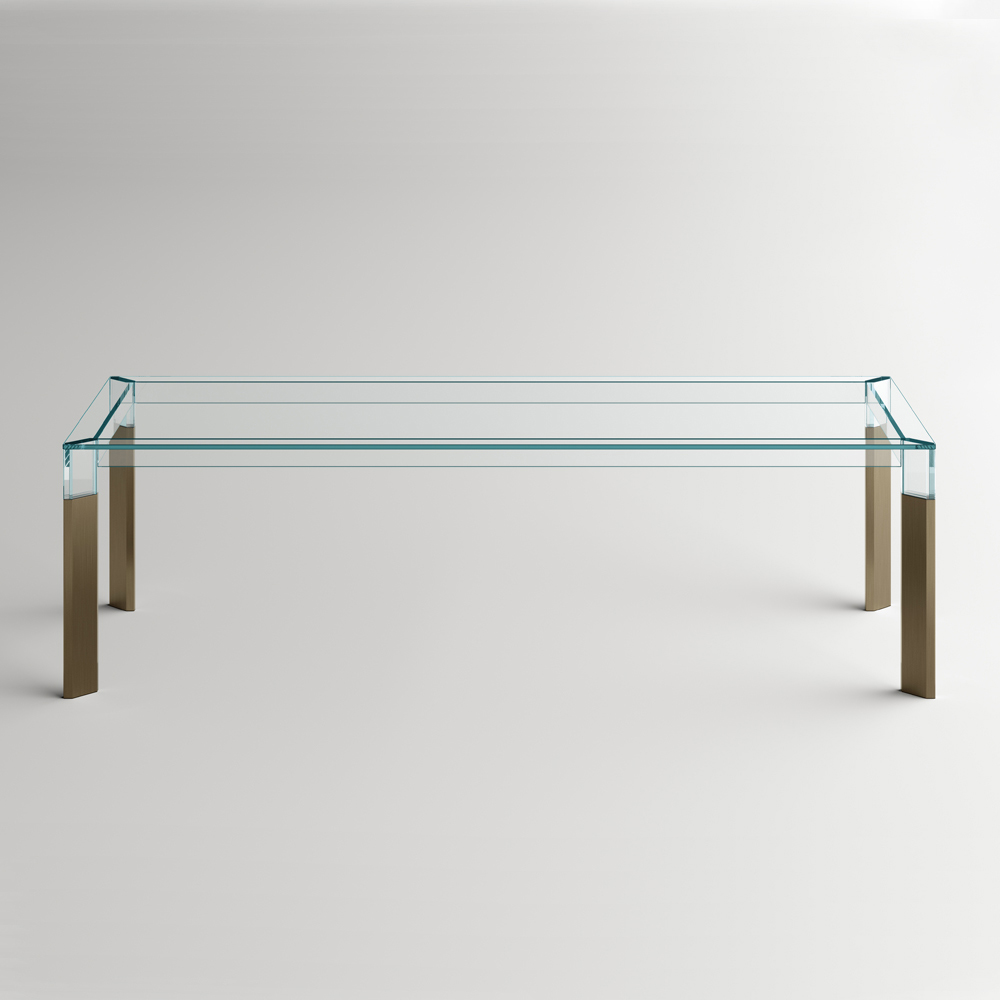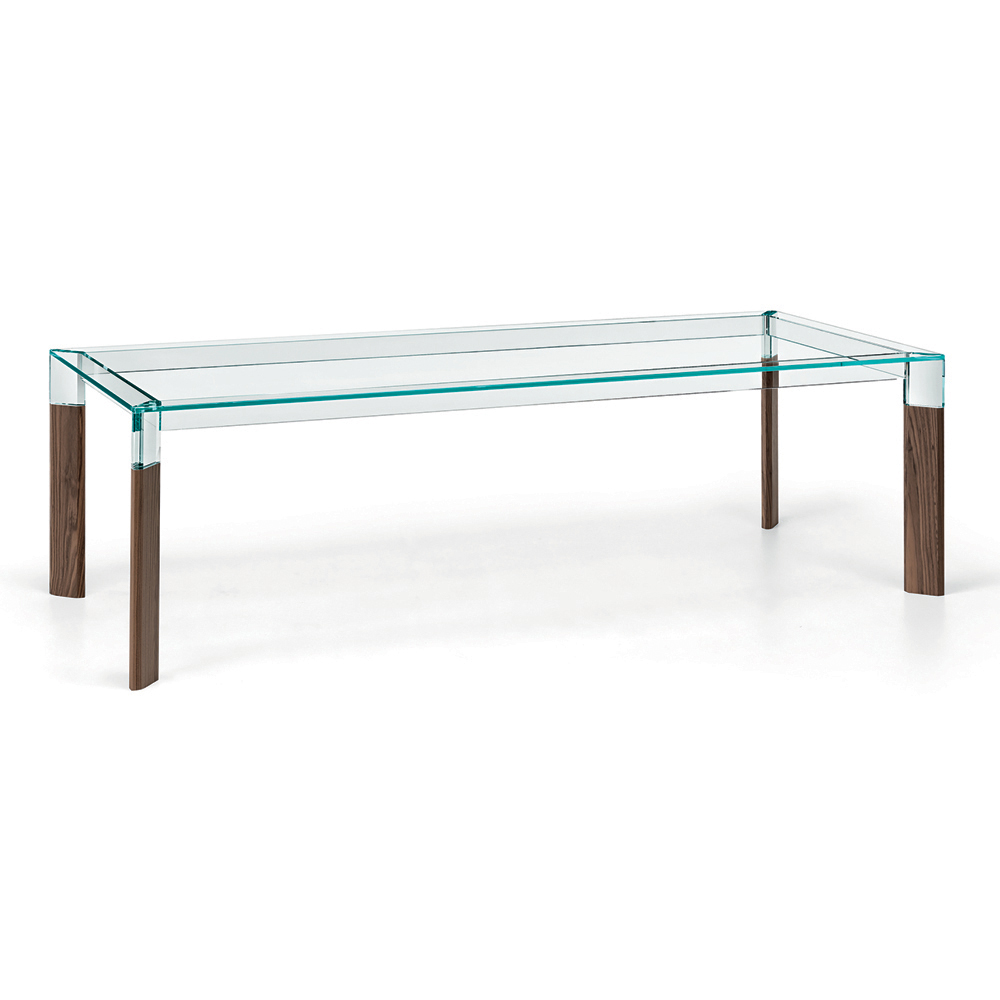 Tavolinë ngrënie tërësisht e prodhuar në Itali me majë xhami dhe këmbë prej xhami dhe druri të fortë . Një zgjidhje mobilimi e përjetshme, e përshtatshme për stile të ndryshme, e aftë për të nënvizuar bashkimin e përsosur mes elegancës së xhamit dhe madhështisë së drurit, duke favorizuar shkathtësinë e përdorimit të tij në hapësirat shtëpiake. Një protagonist i madh i zonës së ndenjes, i karakterizuar nga teknika komplekse ndërtimi të përdorura nga artizanë të aftë italianë për të krijuar një tavolinë ngrënieje me cilësi të lartë dhe veçanërisht funksionale. Rezultati është një harmoni e linjave dhe formave të thjeshta që krijojnë idenë perfekte për të arreduar dhomat e ngrënies apo kuzhinat me një stil bashkëkohor në mënyrë ekskluzive dhe të rafinuar, duke pushtuar qendrën e vëmendjes dhe duke i bërë momentet në shoqëri unike.