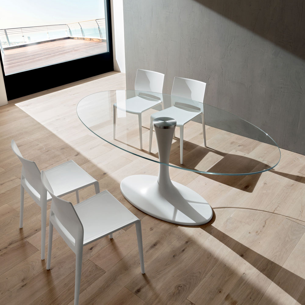 Tavolinë ngrënie e prodhuar në Itali me majë ovale në