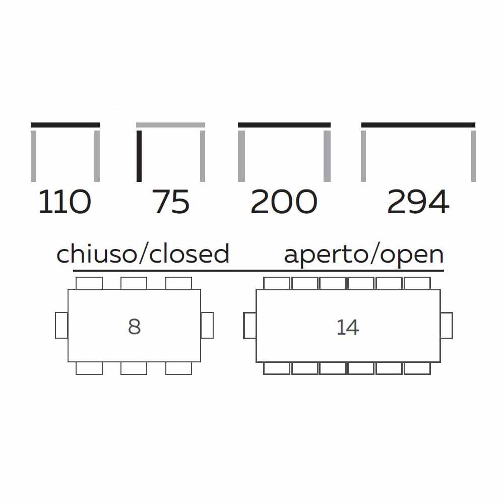 Tavolinë ngrënie moderne e zgjatur deri në 294 cm me majë gresi, produkt me cilësi të lartë Made in Italy.