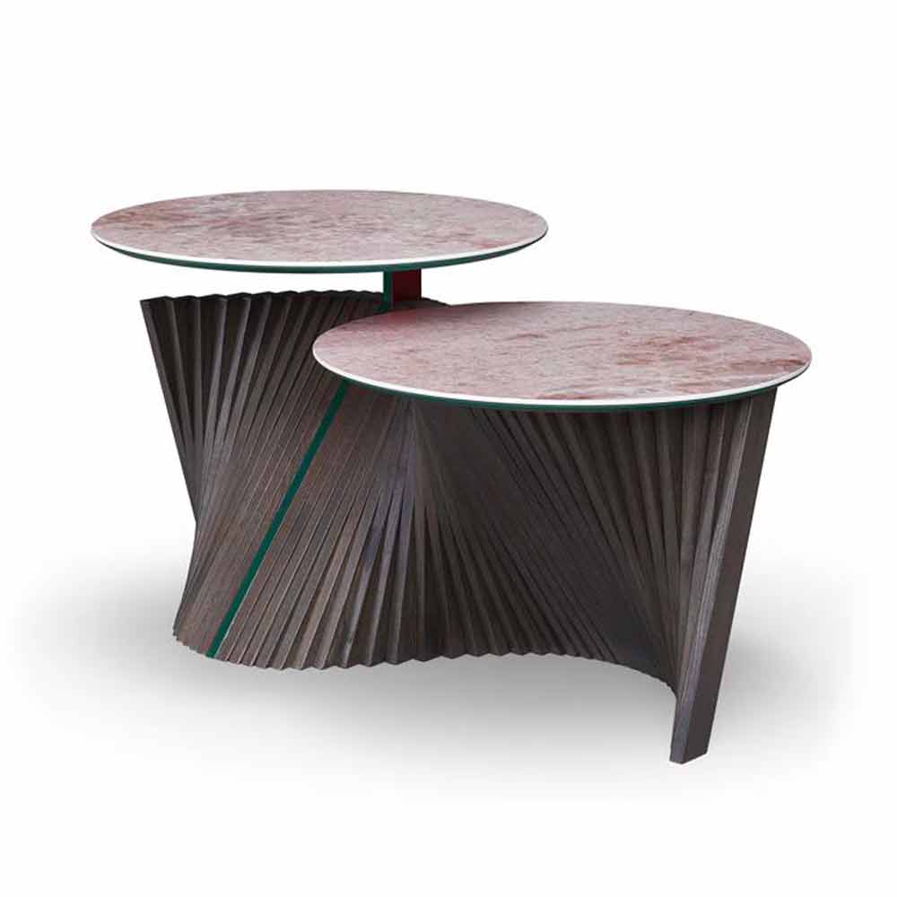 Dizenjoni tryezë kafeje në gresi prej lëmuar mermeri dhe dru hiri, një produkt i imët i Prodhuar në Itali.