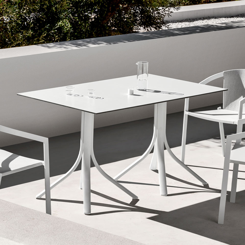 Tavolinë e jashtme me dizajn drejtkëndor në alumin dhe hpl në 2 përfundime, artikull me cilësi të lartë prodhuar në Itali.