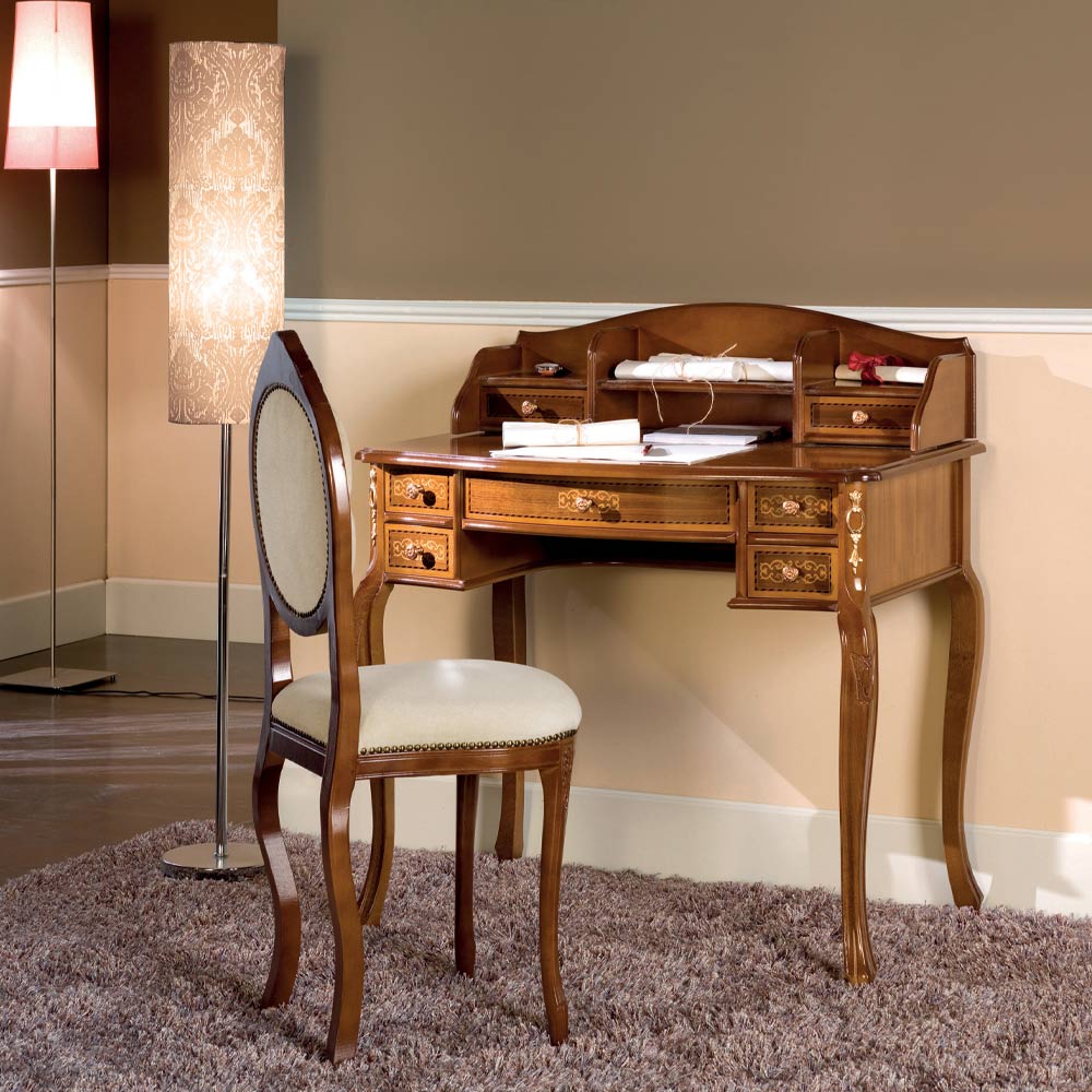 Tavolinë e stilit klasik prej druri të arrës së çmuar me veshje elegante ari të kompletuara me 7 sirtarë dhe raft praktik . Ideale për të arreduar në mënyrë elegante çdo ambient. Një komplement unik dhe i rafinuar, i prodhuar tërësisht në Itali nga mjeshtra të aftë , i përfunduar me mençuri dhe shije për elegancë. Prodhimi kryhet duke përdorur materiale të shkëlqyera , dhe duke kryer punënmedorë me kujdesin dhe profesionalizmin maksimal që i dallon produktet Made in Italy .