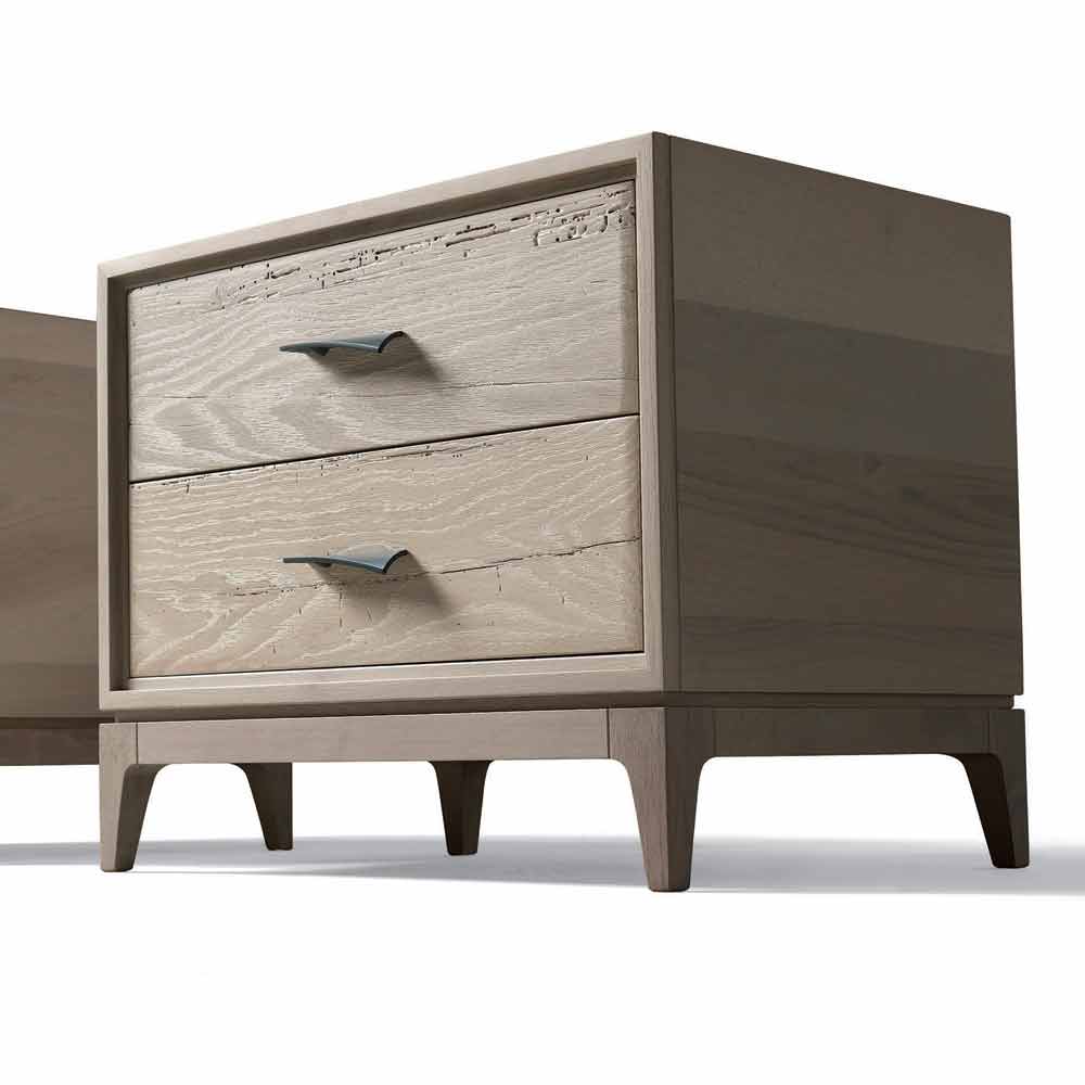 Tavolinë shtrati me strukturë bllokimesh rimeso arre me 2 sirtarë në lisin antik.
