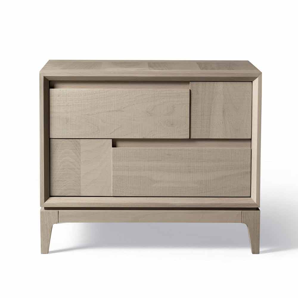 E gjithë stili dhe artizanati që karakterizojnë mjeshtërinë shfaqen në këtë zgjidhje të shkëlqyeshme për zonën e natës. Gjoksi i ngathët i sirtarëve rrit karakteristikat e arrës së ngurtë dhe mbështetet në këmbë që mund të bëhen prej druri, si dhe nga çeliku. Dizajn inovativ dhe origjinal, falë mjeshtërisë së rafinuar të sirtarëve. Linjat që karakterizojnë sipërfaqen, me elemente drejtkëndëshe alternative, japin lëvizje në sipërfaqet.