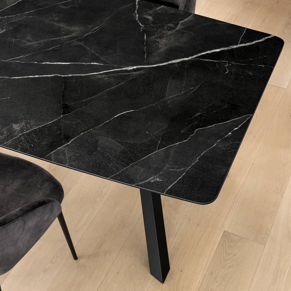 Elegancë absolute dhe materiale të shkëlqyera: kjo tavolinë fikse në Laminam dhe metal është projektuar për ata që dëshirojnë të sjellin një mobilje me një ndikim të fortë vizual në shtëpinë e tyre ose në një hapësirë të caktuar, pa sakrifikuar rezistencën dhe funksionalitetin .