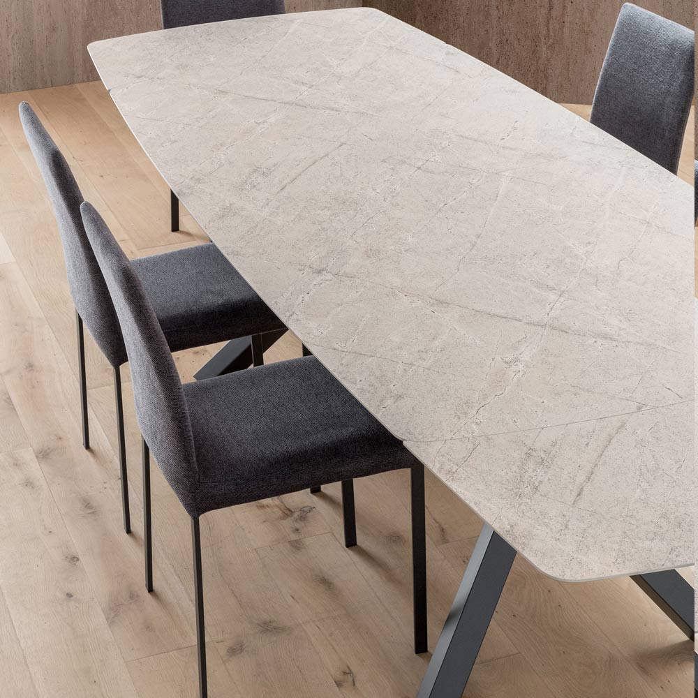 Falë sistemit të integruar të zgjatjes me zgjatje anësore , tavolina zgjerohet lehtësisht, duke siguruar fleksibilitet maksimal në çdo rast, nga drekat e përditshme deri te takimet me mysafirë të shumtë.