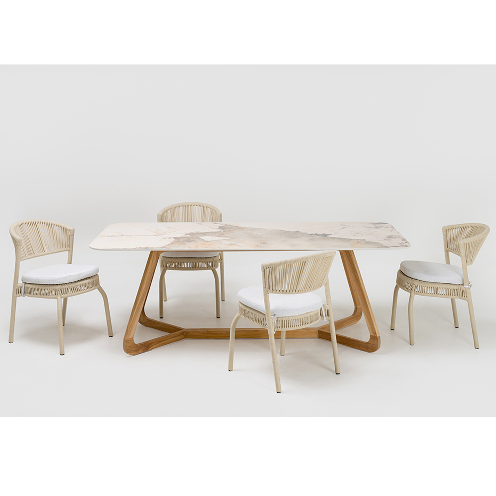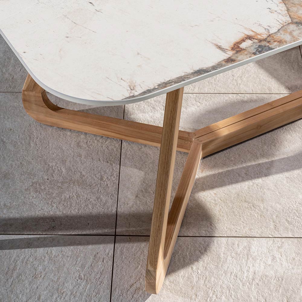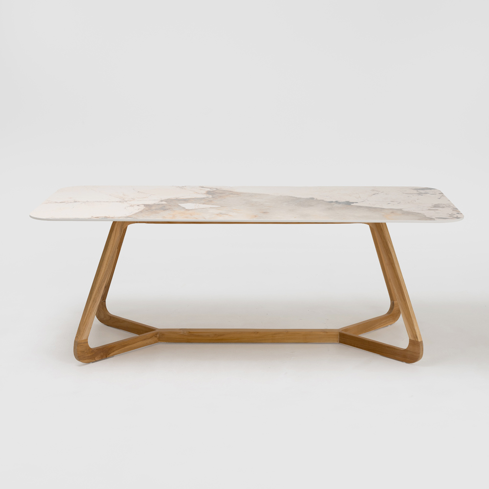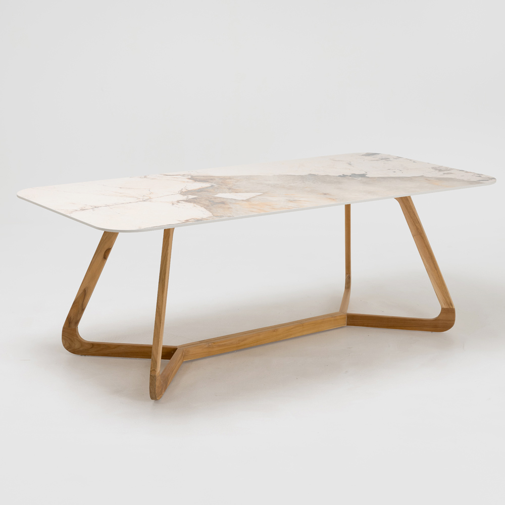 Tavolinë qeramike dhe druri tik për ambiente të brendshme dhe të jashtme, e prodhuar në Itali