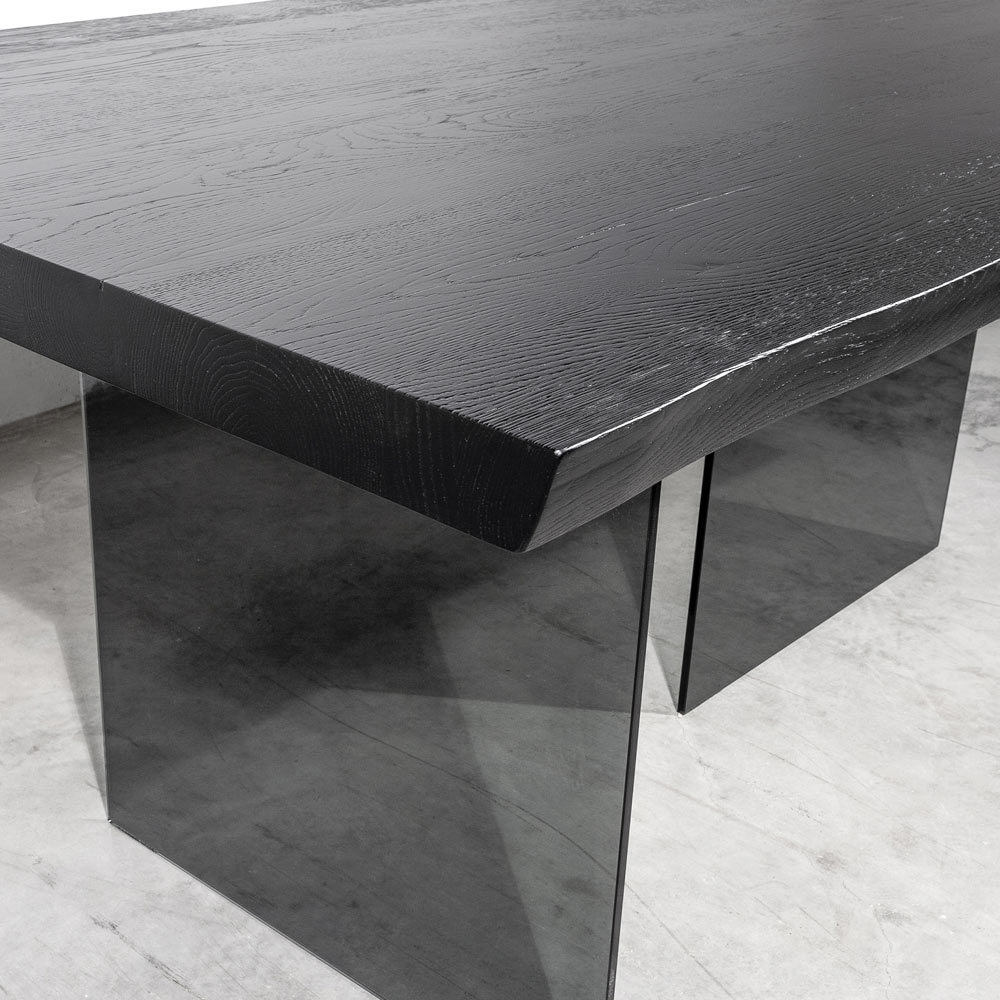 Tavolinë prej druri e veshur me bazë lisi dhe kristali me nyje Prodhuar në Itali.