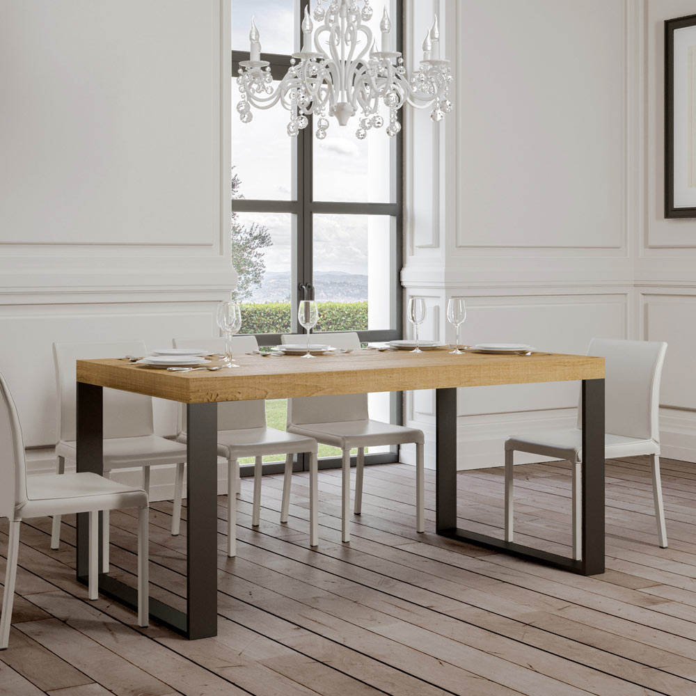 Zbuloni thelbin e dizajnit me këtë tryezë të zgjatshme , një kryevepër e fleksibilitetit dhe stilit. Korniza e fortë e hekurit kombinohet bukur me pjesën e sipërme prej druri , një kombinim që premton t'i shtojë një hije elegance moderne çdo hapësire.