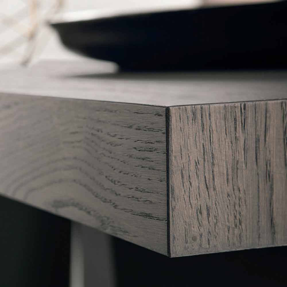 Struktura e tij është e përbërë nga panele të pjerrëta në metal të përfunduar antracit të ngulitur në mikro; ndërsa pjesa e sipërme , e cila ka një trashësi 60 mm, është e punuar me rimeso lisi me nyje me përpunim të palosshëm. E disponueshme në shumë përmasa dhe përfundime: Masat