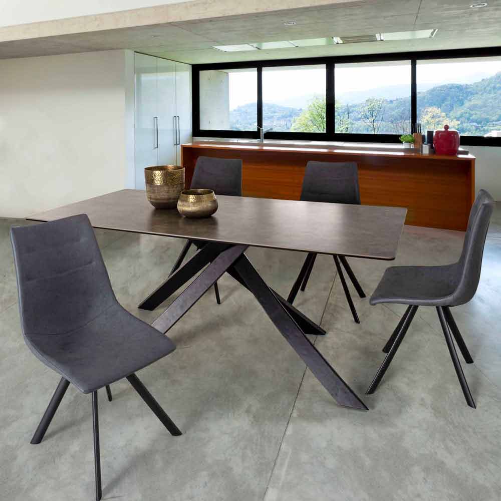 Tavolinë moderne për darkë me lëvizje të sipërme qeramike dhe qelqi - Ringo