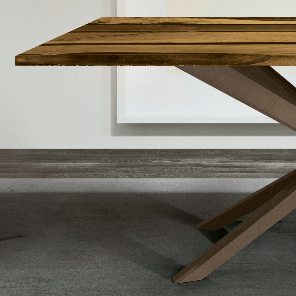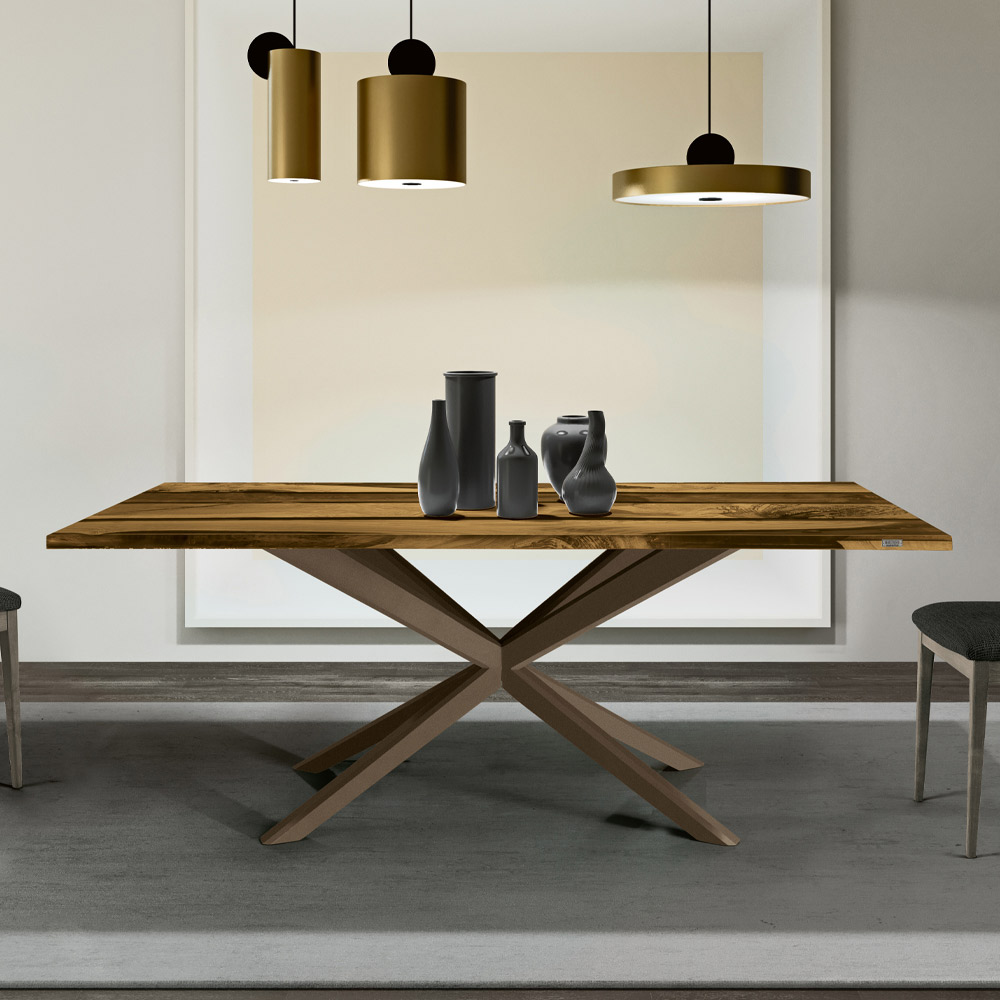 Tavolinë ngrënie e përbërë nga sipër lisi dhe rrëshirë epokside me ngjyrë dhe bazë druri e fortë me mbështetje druri. Një aksesor mobilimi i rafinuar i aftë për të kapur qendrën e vëmendjes falë dizajnit të tij tërheqës dhe formës së tij origjinale që i jep një prekje ekskluzive çdo mobilimi modern. Karakterizohet nga një sipërmelisi me nyje të veshur me rrëshirë dhe një bazë druri në ngjyrë hekuri . Prandaj, rezultati është një tavolinë ngrënieje moderne dhe moderne, e karakterizuar nga një shkathtësi e theksuar e përdorimit për të pajisur me stil çdo situatë shtëpiake. Produkti është pjesë e linjës së re të produkteve moderne të prodhuara me respekt për natyrën. Prodhuar në Itali me materiale cilësore.