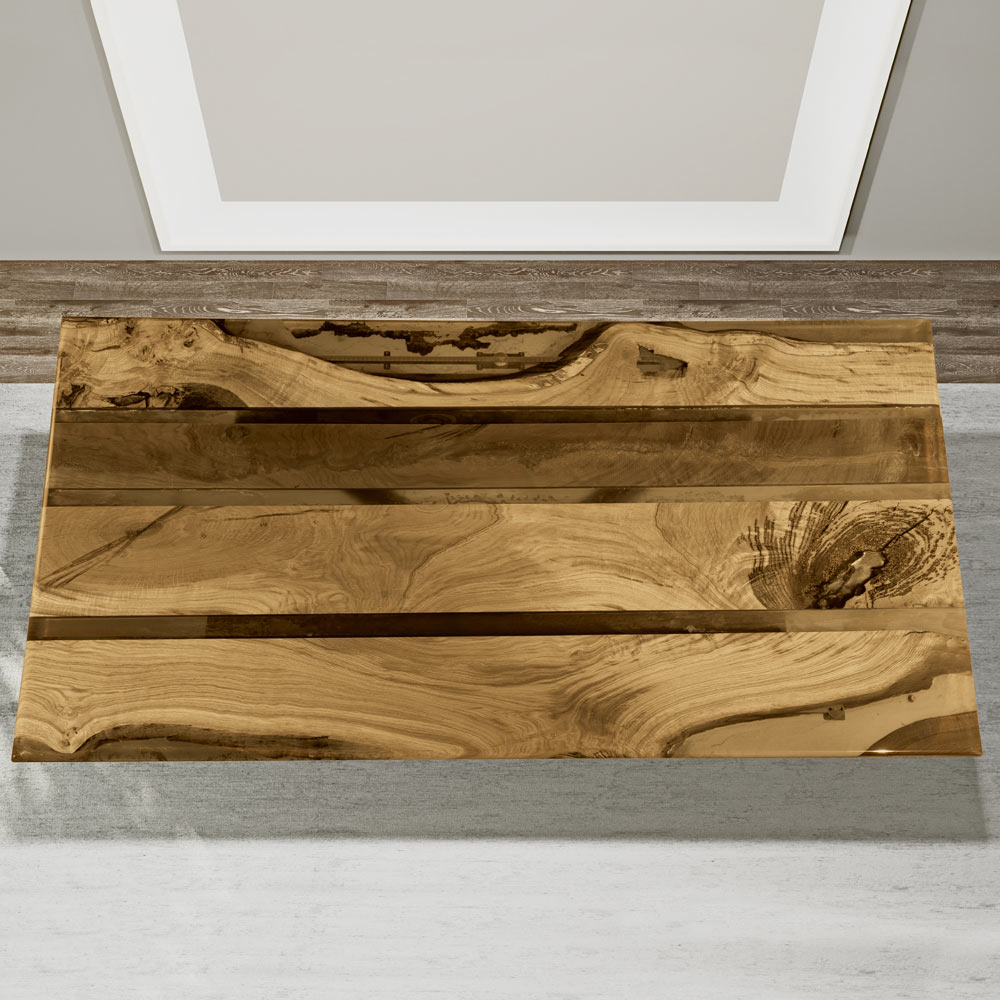 Tavolinë ngrënie drejtkëndëshe me majë druri dhe rrëshirë Made in Italy
