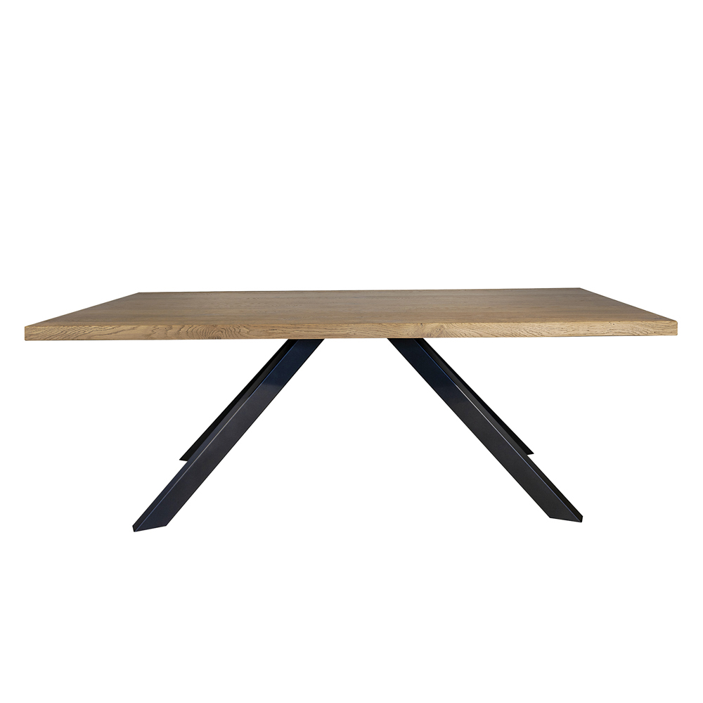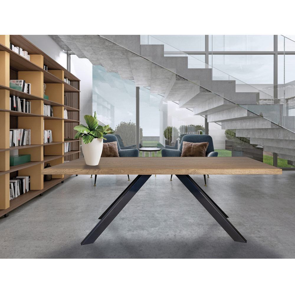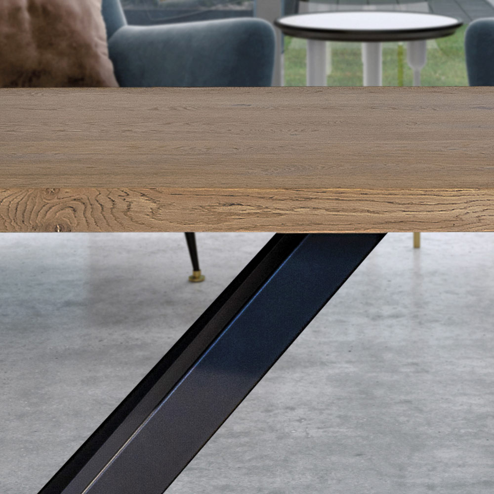 Tavolinë prej druri me rimeso lisi me nyje të zhveshur dhe bazë metalike Prodhuar në Itali.