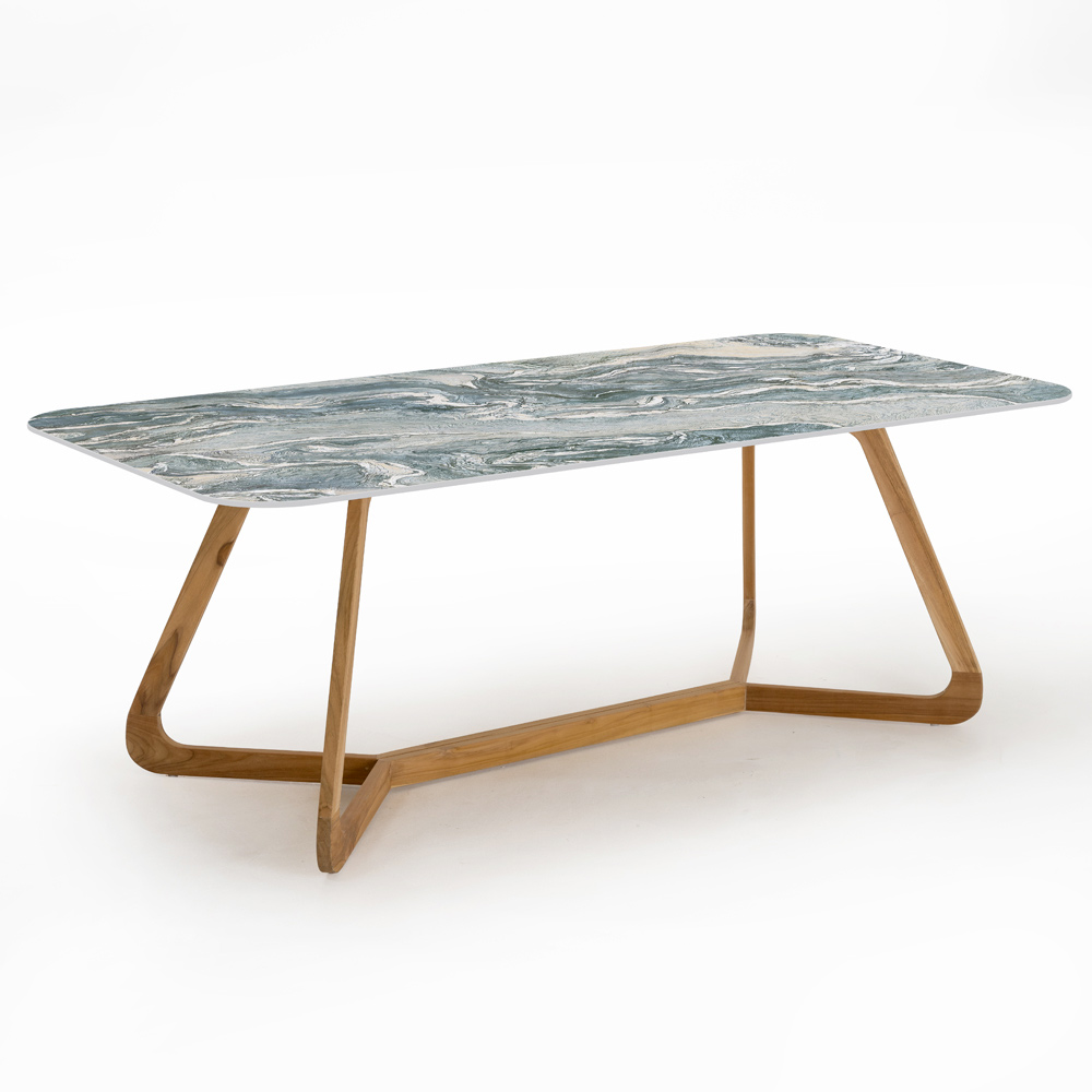 Tavolinë kopshti drejtkëndëshe prej druri dhe qeramike, e prodhuar në Itali