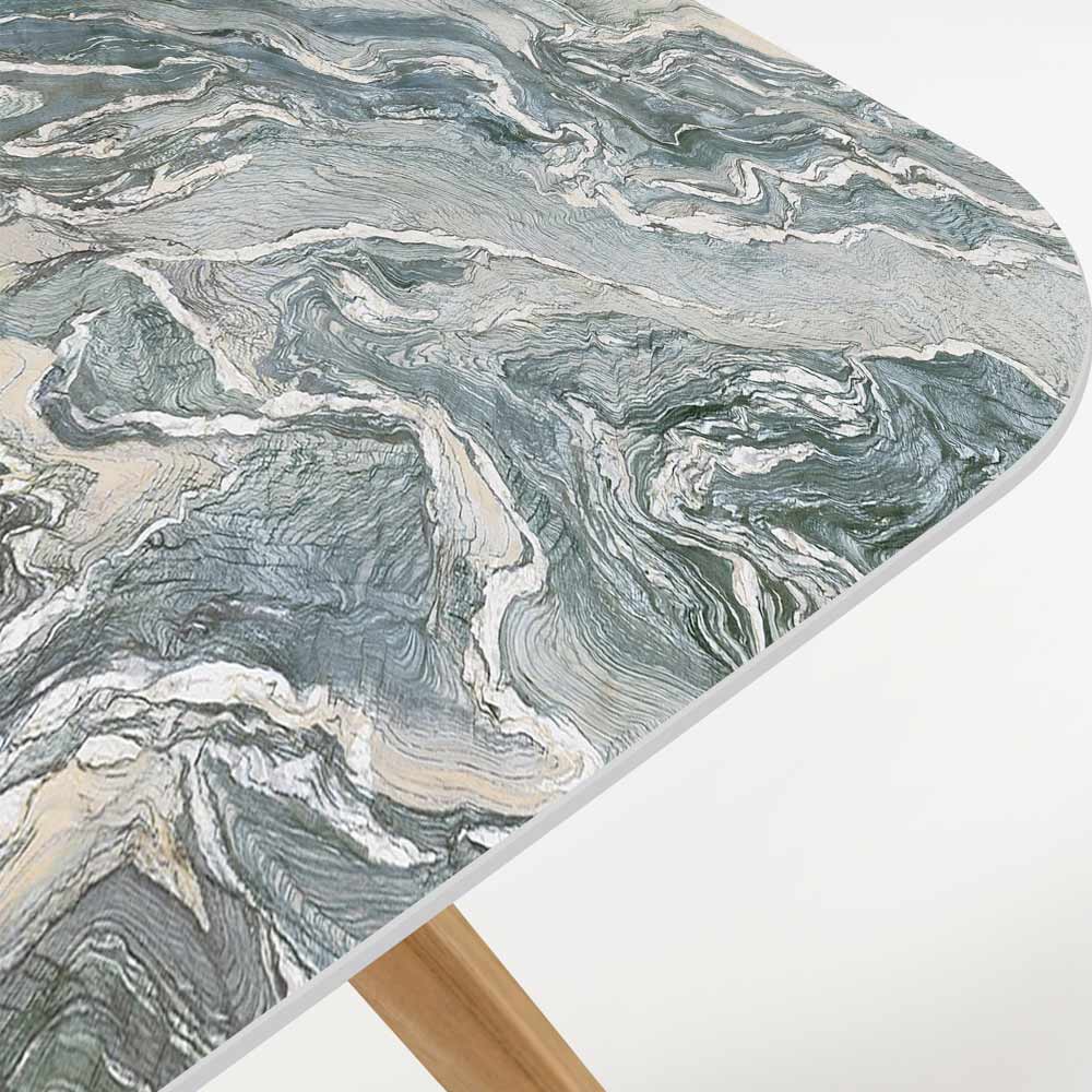 e prodhuar në Itali. Kjo tavolinë ekskluzive për jashtë është një bashkim perfekt i elegancës natyrore dhe dizajnit bashkëkohor. Me një sipërfaqe qeramike me fibra të rafinuara, kjo tavolinë është më shumë sesa thjesht një mobilje, por një pikë qendrore e vërtetë për çdo hapësirë të jashtme. Çdo tavolinë është unike, falë variacioneve natyrore në qeramikë që kapin thelbin e tokës me ngjyra që variojnë nga gri në blu dhe jeshile.