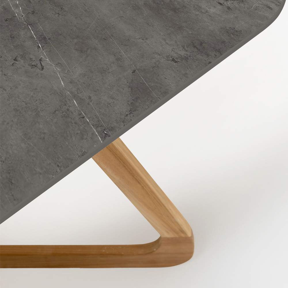 Sipërfaqja e errët gri Pietra ofron një kontrast të mrekullueshëm me tonin e ngrohtë të drurit, duke e bërë këtë tavolinë jo vetëm një shtesë funksionale për hapësirën tuaj të jashtme, por edhe një element dekorativ vërtet tërheqës. E përsosur për çdo ambient të jashtëm, nga një kopsht modern te një verandë klasike, tavolina përzihet në mënyrë të përsosur me pjesën tjetër, duke shtuar një prekje stili të sofistikuar .