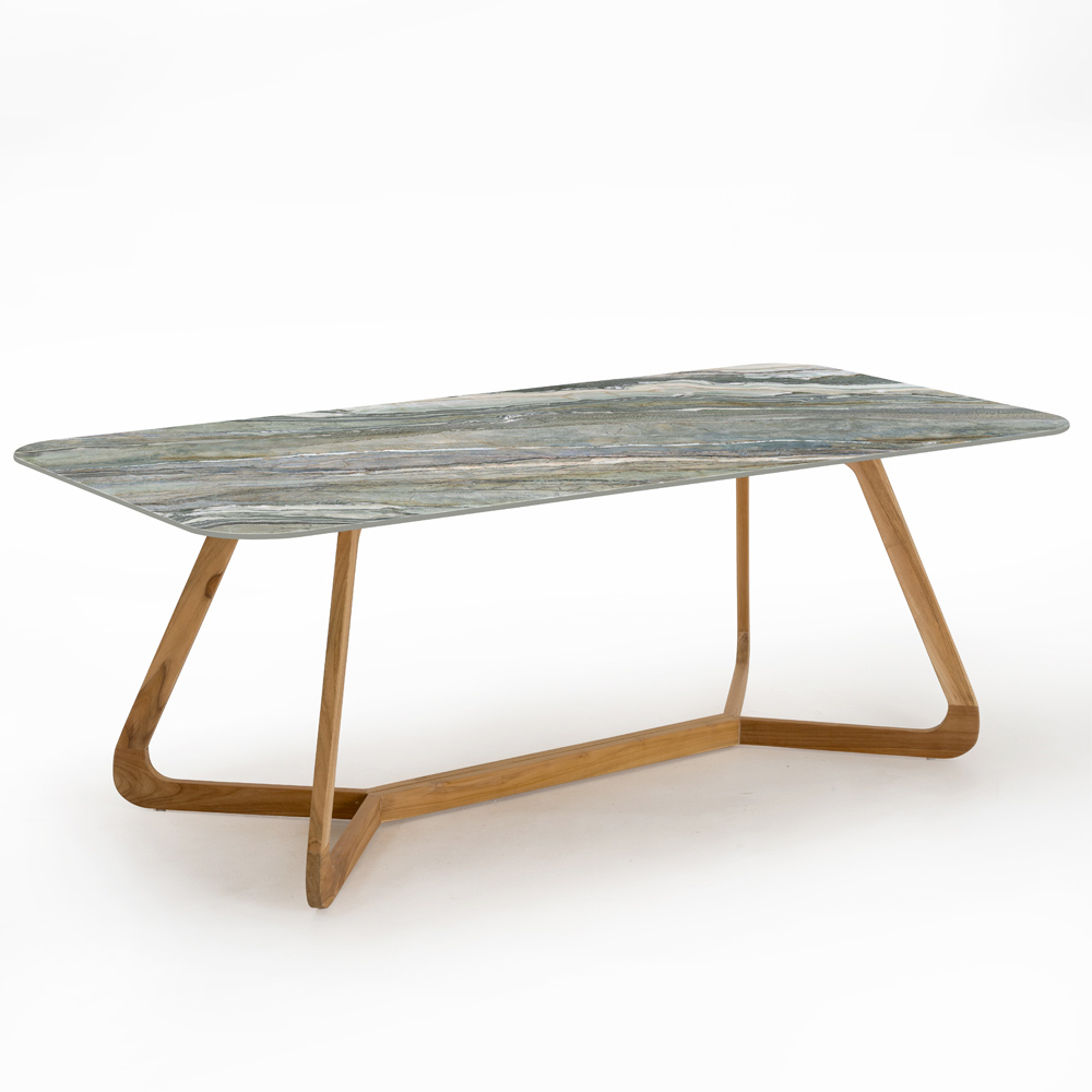 Tavolinë kopshti drejtkëndëshe prej druri dhe qeramike, e prodhuar në Itali