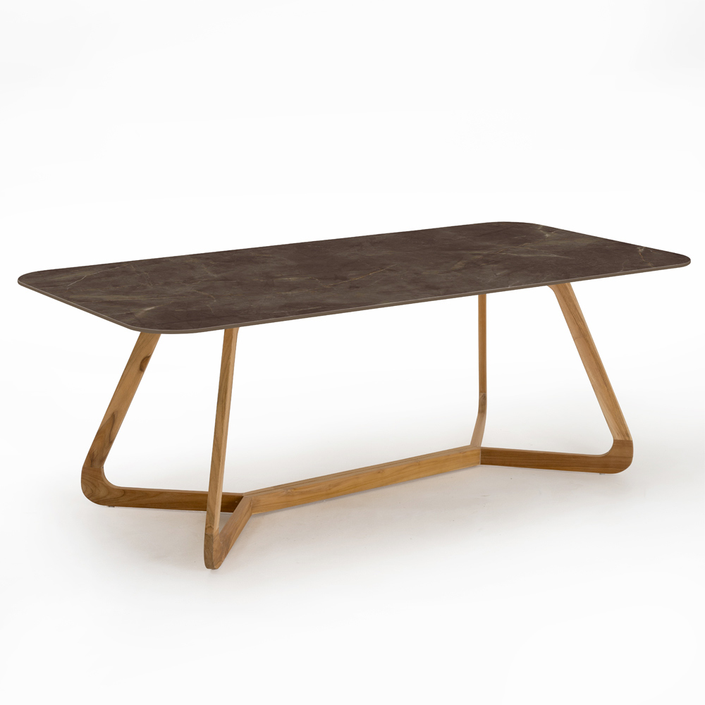 Tavolinë kopshti drejtkëndëshe prej druri dhe qeramike, e prodhuar në Itali