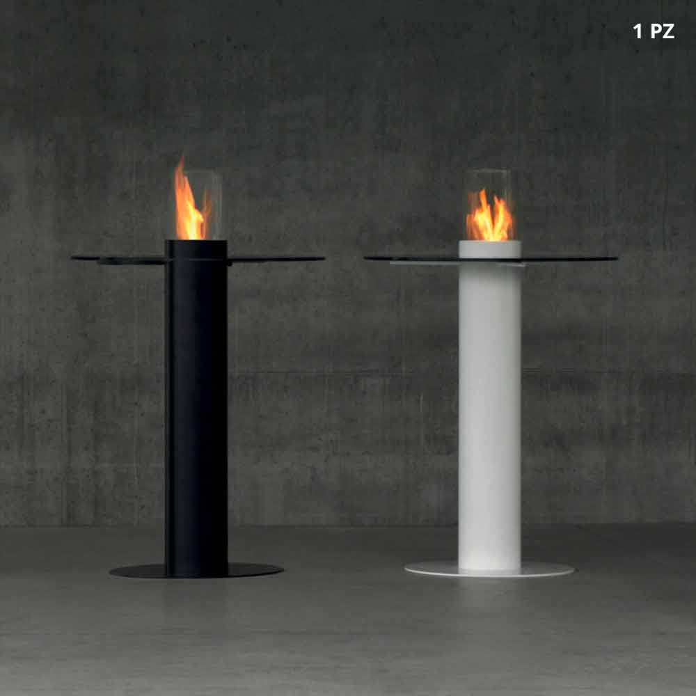 Tavolinë në natyrë me djegës të bioethanolit dhe dekanit të lartë të qelqit Dizajni i tij është thelbësor dhe minimal; funksionaliteti dhe bukuria e saj mblidhen në këtë pjesë të mobiljeve për përdorim të jashtëm. E bërë nga çeliku i pikturuar për të siguruar qëndrueshmëri, të pajisur me majë qelqi që të përdoret si tryezë kafeje, djegësi i bioethanolit pozicionohet në pjesën e sipërme të kolonës. Prodhuar në Itali produkt.