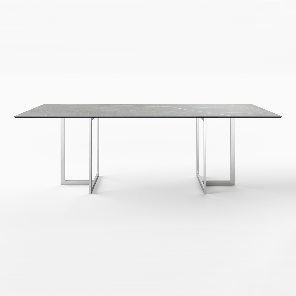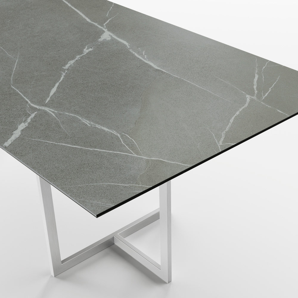 Tavolinë ngrënieje prej guri prej porcelani me efekt guri dhe çelik Prodhuar në Itali.