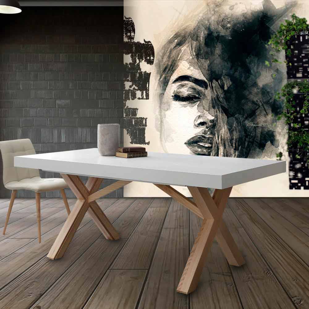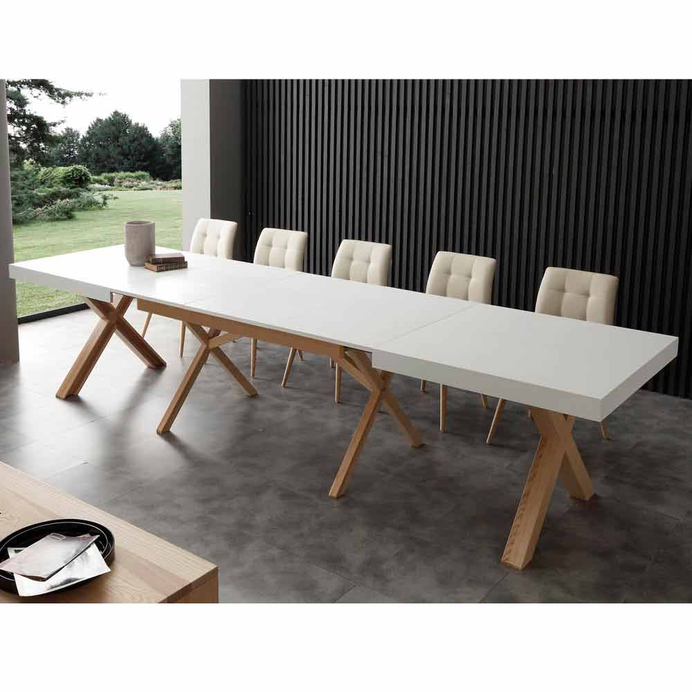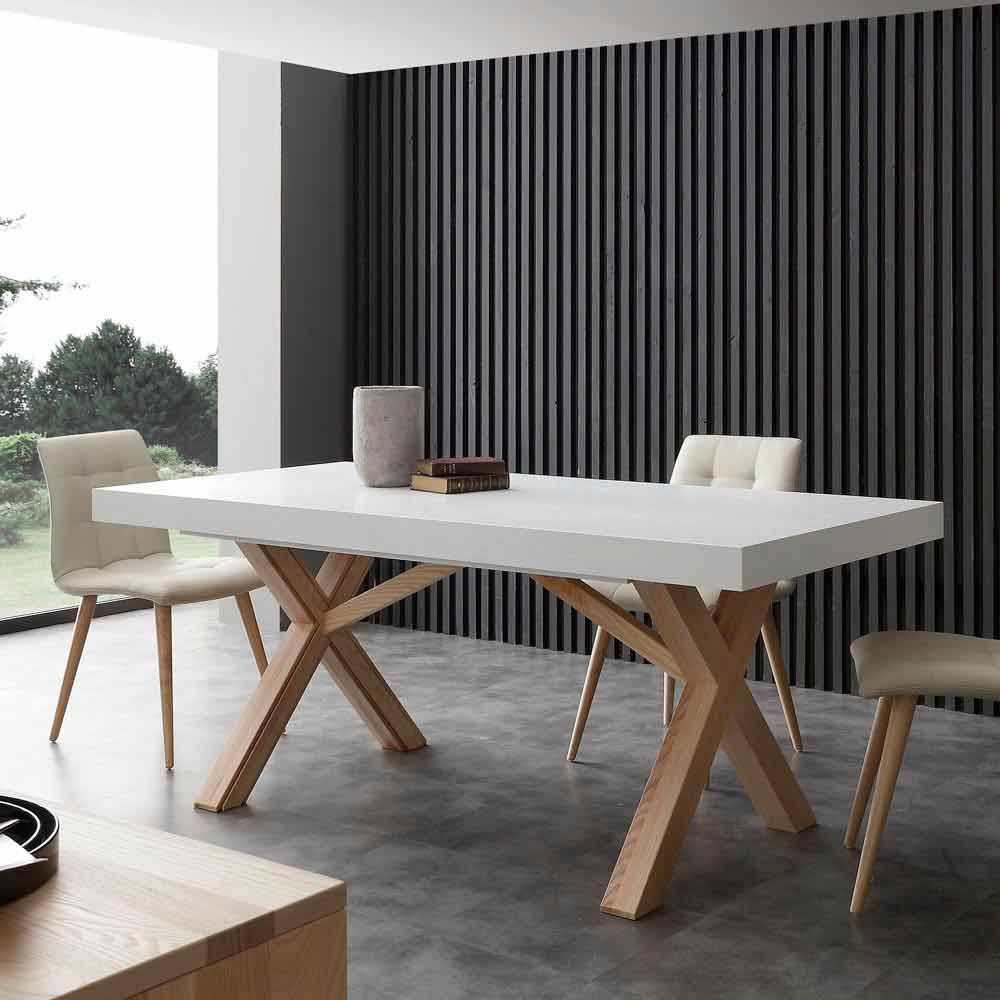 Tavolinë e bardhë e zgjatur me kornizë druri të ngurtë natyral Rico Rico është një tavolinëngrënieje e zgjatur unike për stilin, funksionalitetin dhe dizajnin.