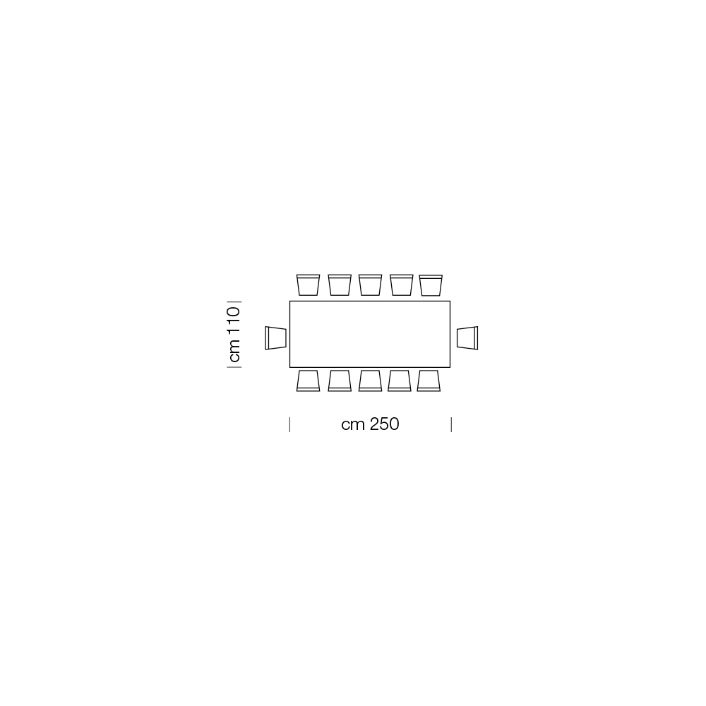 Gjatësia 250 x Thellësia 110 x Lartësia 75 cm 12 vende